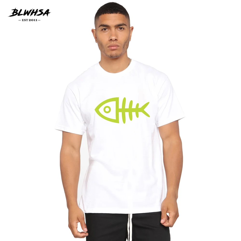 Мужская футболка с принтом рыбьей кости BLWHSA, летняя футболка с коротким рукавом, Забавный дизайн, с рисунком синей рыбы