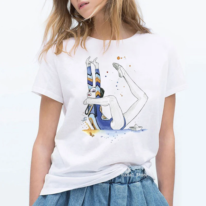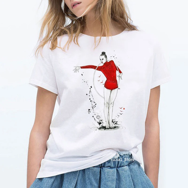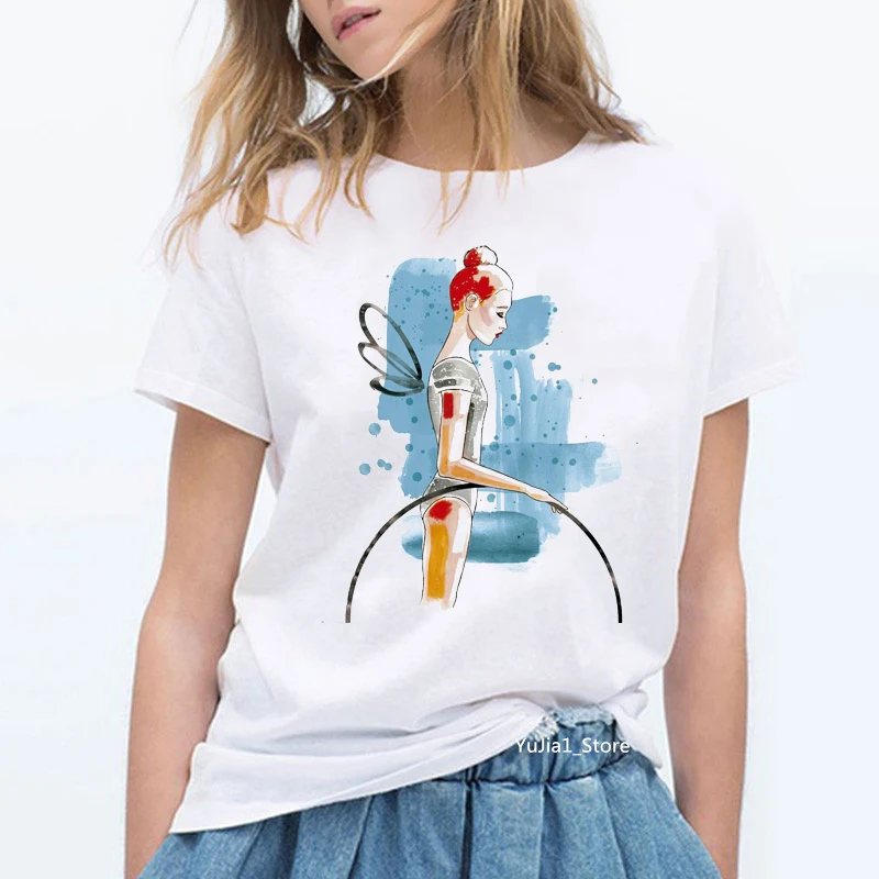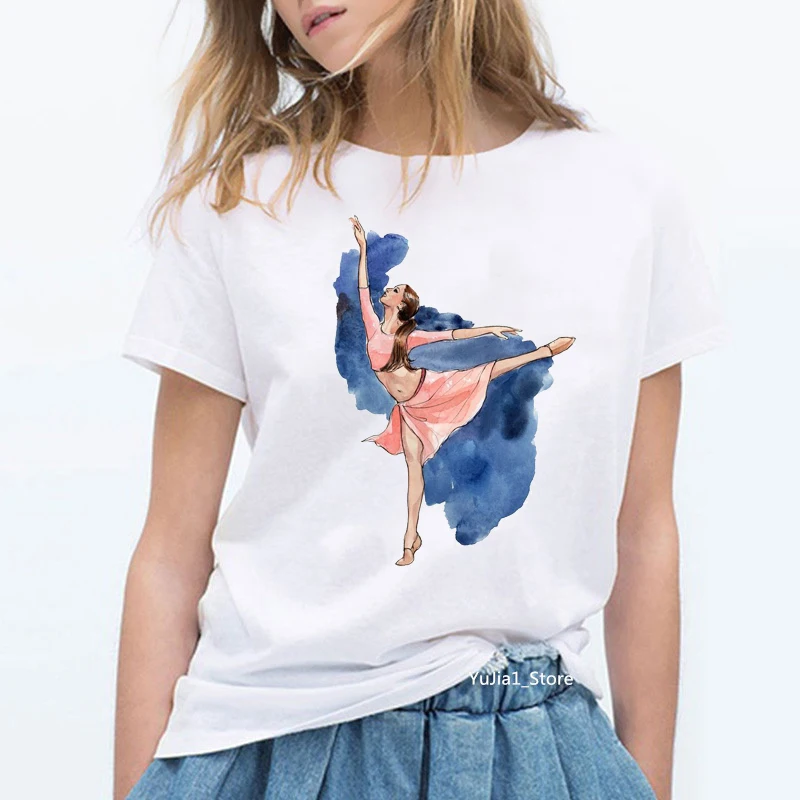 Элегантная Винтажная Футболка с принтом танцев балерины, женская од...