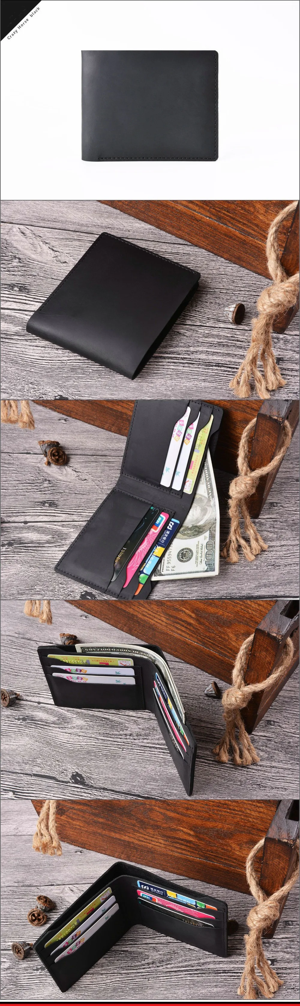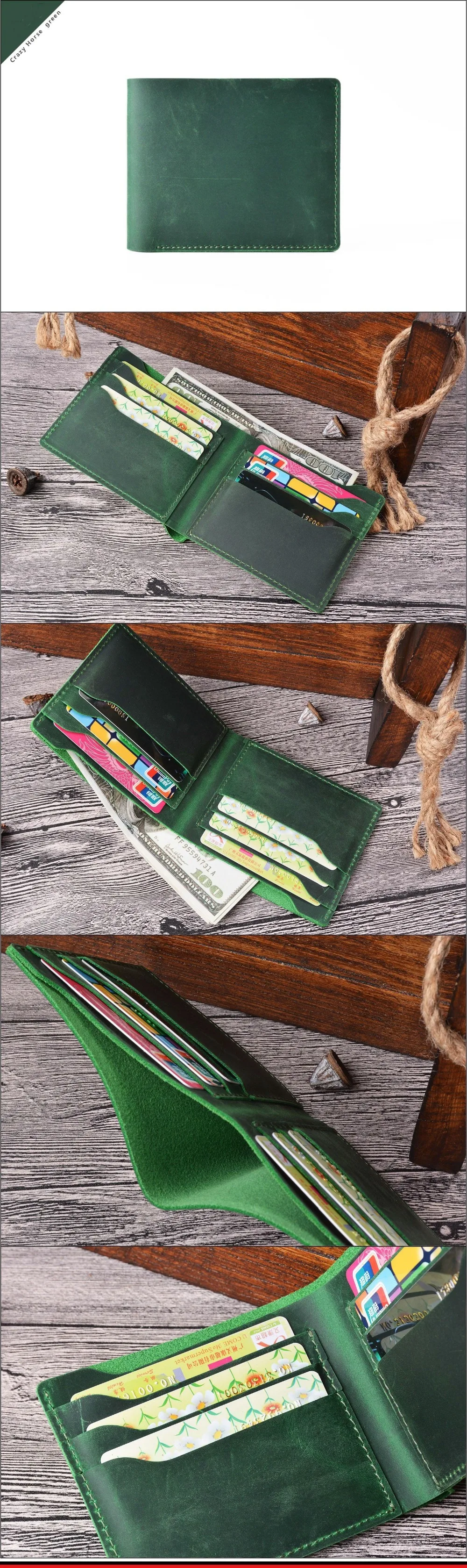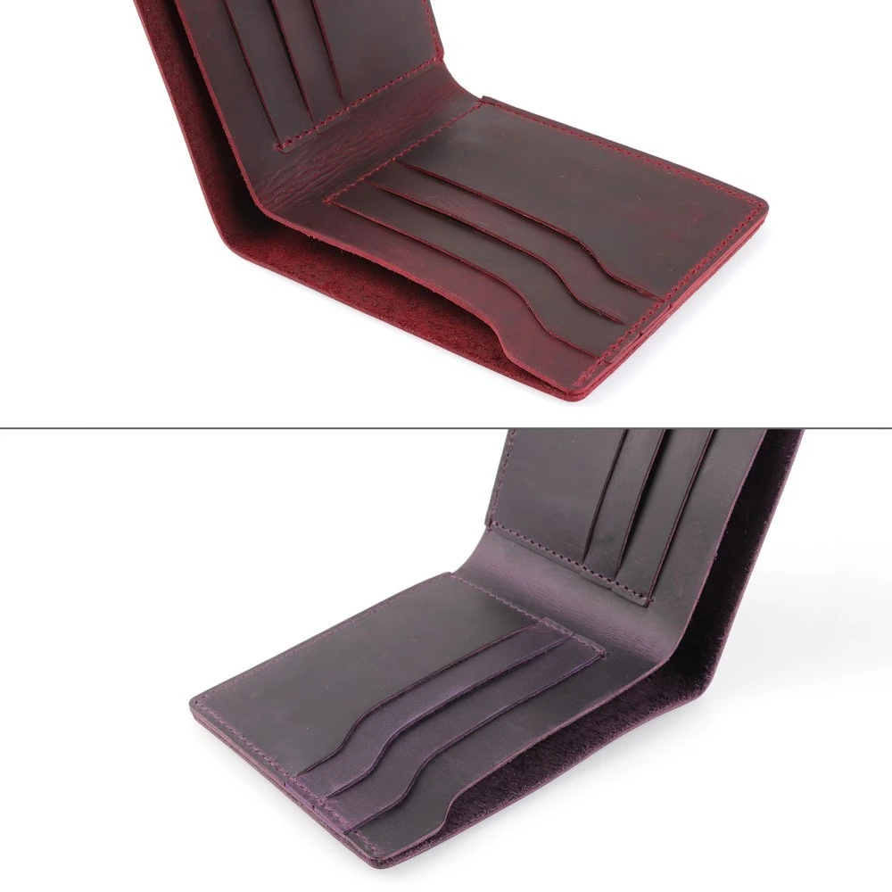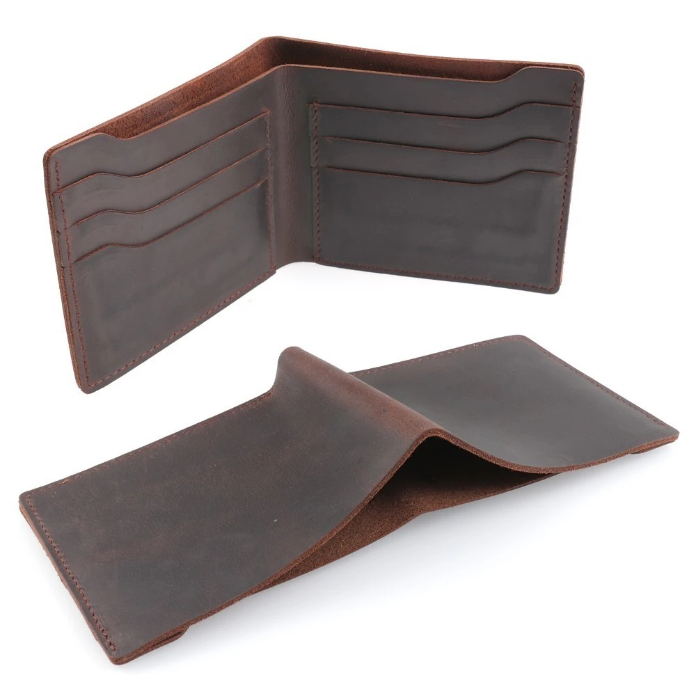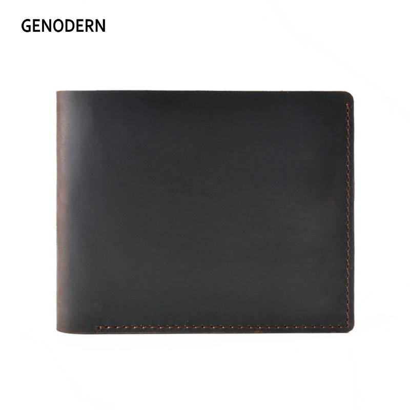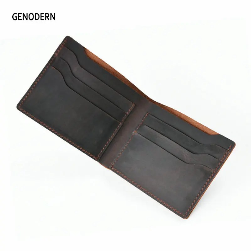 Винтажный кошелек GENODERN из кожи Крейзи Хорс для мужчин, мужской кошелек двойного сложения, тонкие мужские кошельки, ретро тонкий кошелек из воловьей кожи для мужчин и женщин