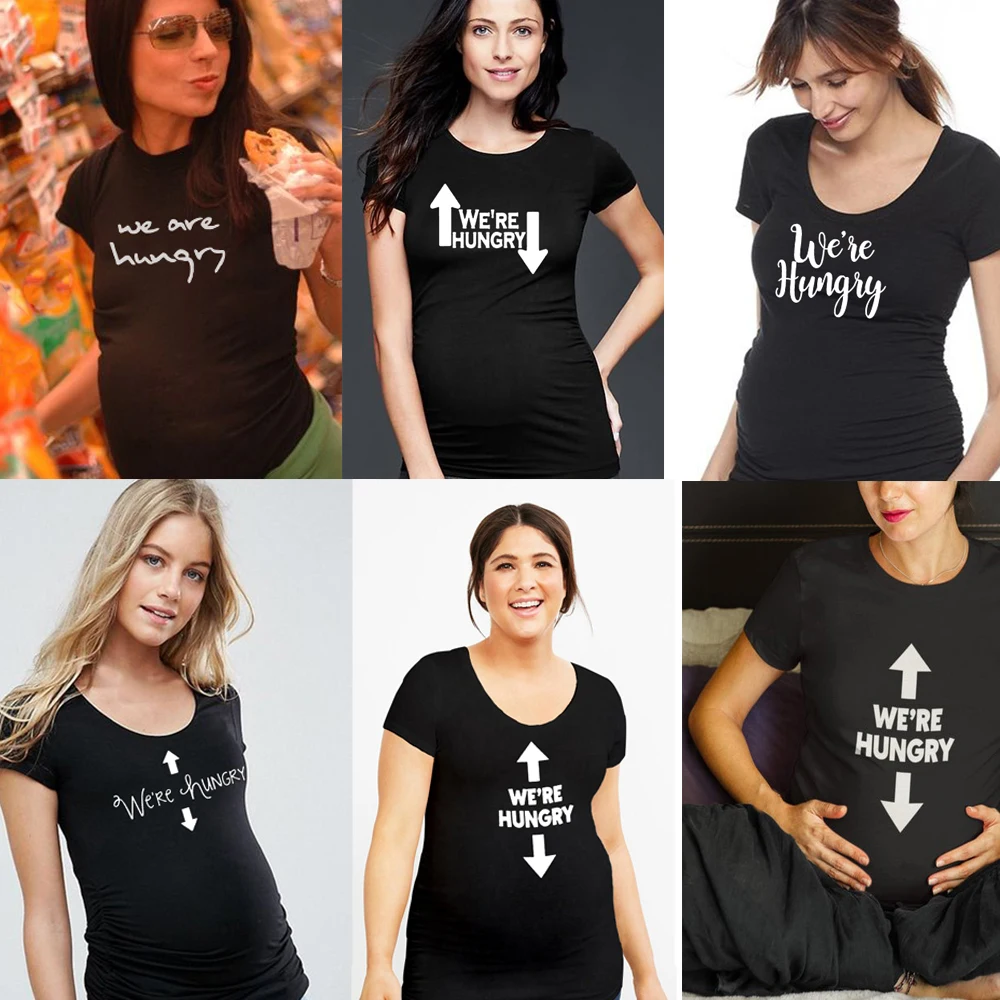 Футболка для беременных с принтом «Мы голодны», футболки для беременных, футболки для беременных с вырезом лодочкой, Забавные футболки для беременных, подарки