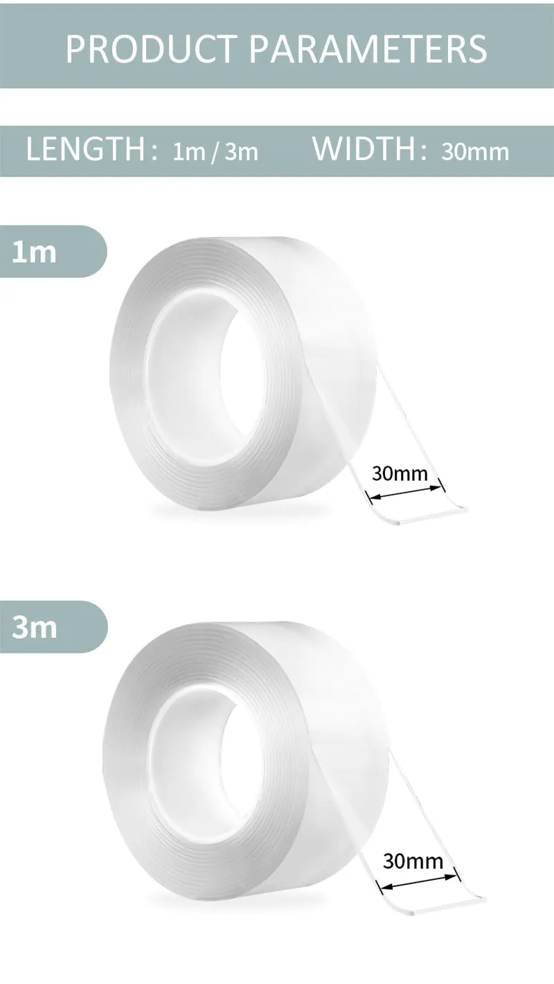 Клейкая лента, сверхпрочная двусторонняя клейкая лента, многоразовая двухсторонняя очищаемая нано-акриловая наклейка для приклеивания