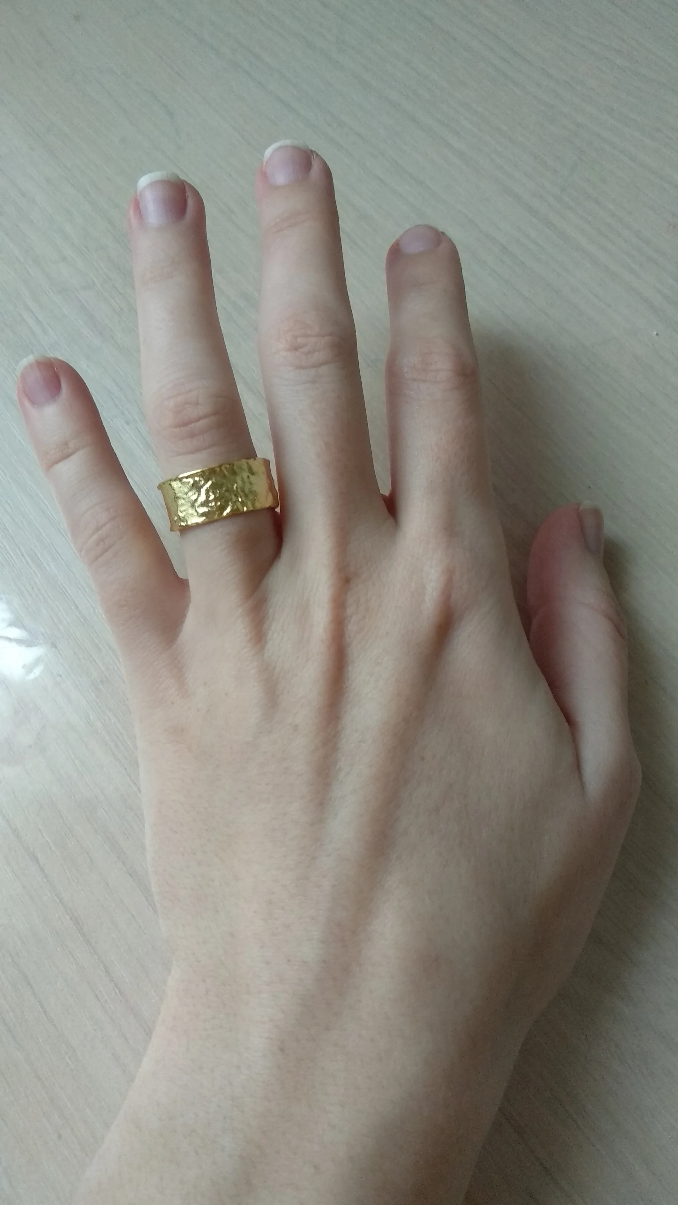 Всё хорошо, очень красиво, спасибо. Но разъём для изменения размера на пальце не работает. Будьте осторожны надевая это, оно может сильно зажать палец и не сниматься без мыла... Я испугалась.