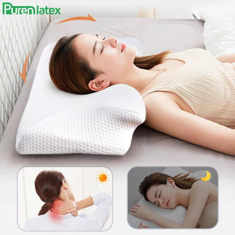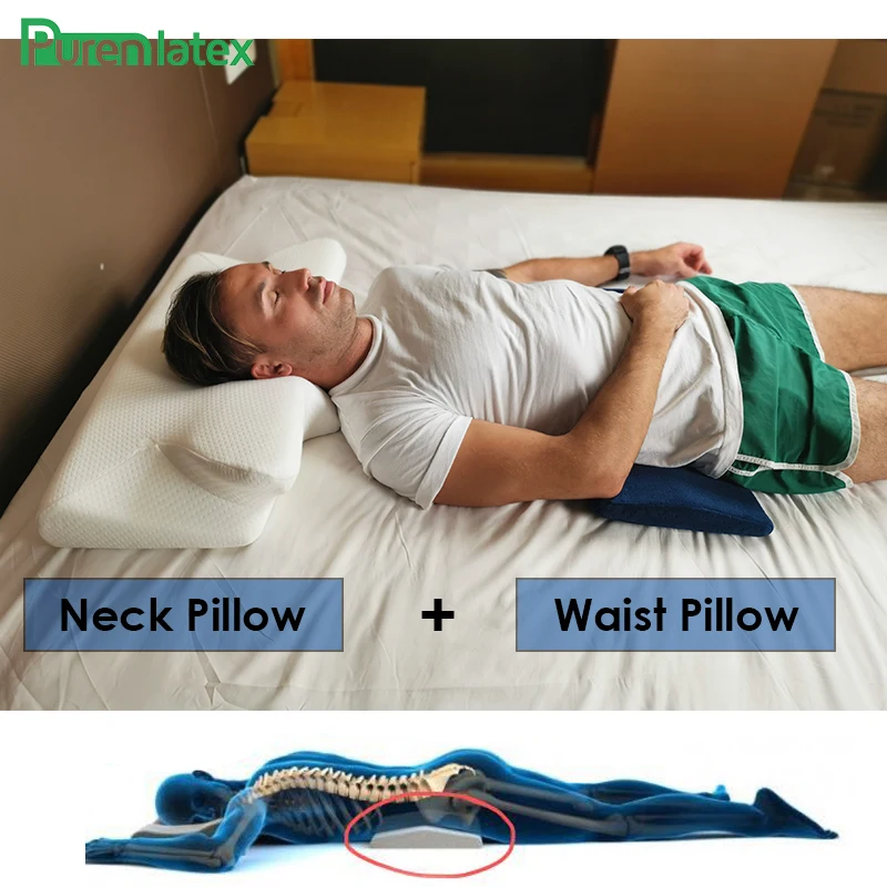 Ортопедическая подушка Purenlatex с эффектом памяти, комплект из 2 предметов, 14 см, для боковой спины, спины, защиты позвоночника