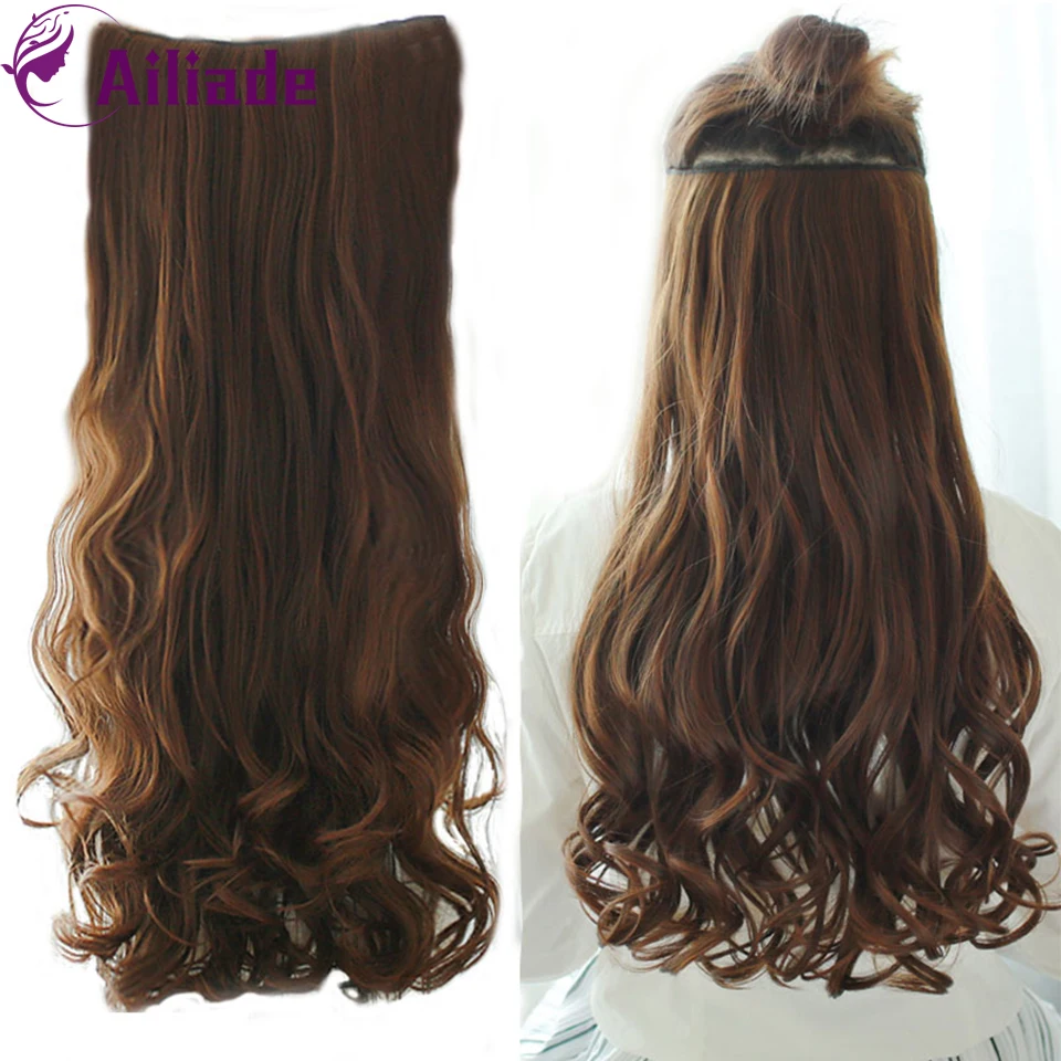 Длинные волнистые синтетические накладные волосы AILIADE, накладные волосы из высокотемпературного волокна черного цвета для женщин, ежедневные накладные волосы 20 '22' 30 '38'