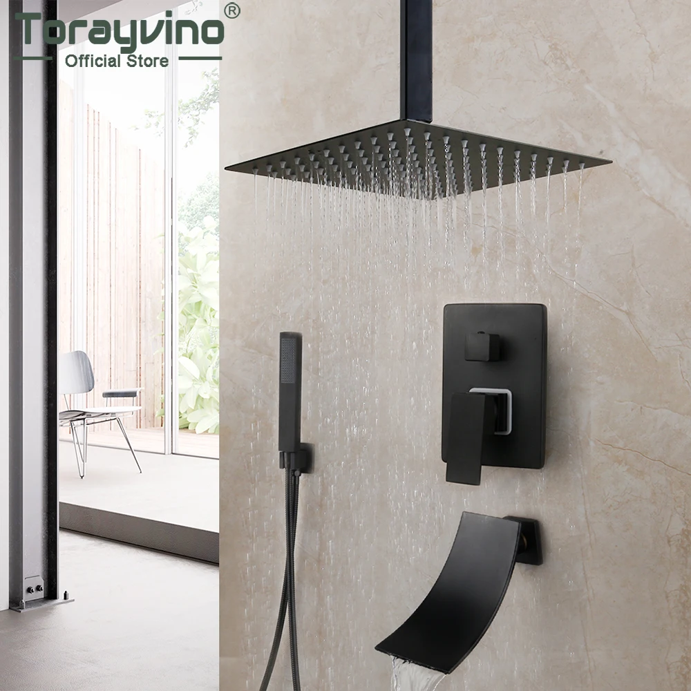 Torayvino 8 16 дюймов черный квадратный смеситель для душа комбинированный набор для ванны смеситель для душа настенный кран для горячей и холодной воды краны