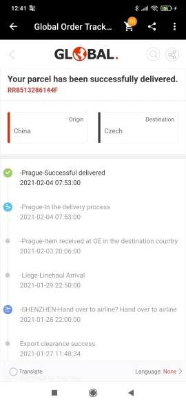 Track17 показывает отправку как доставленный, хотя я не получил его, а также доставлен в Праге, который находится в 160 км от меня. Я позвонить в Чешскую почту инфолина, чтобы узнать, почему товары указаны как доставленные в Праге. Сотрудник чешского почтового отделения сообщил мне по указанному номеру телефона, что она ничего не знает о посылке, только что она была доставлена «адресату» в Праге. Чешская почта является самым крупным перевозчиком грузов в стране. Аликс потерян с уверенностью, потому что сотрудники воруют и никто его не решает. Сотрудник чешского почтового отделения посоветовал мне осуществить поиск с помощью Track17! Я открыть спор, чтобы AliX мог узнать, что произошло с пересылкой, или вернуть деньги, когда у меня больше нет товаров. Тогда у меня нет выбора, кроме как заказать товар снова и ждать недели снова, чтобы "возможно" прибыть. Пять звезд, потому что продавец не винит