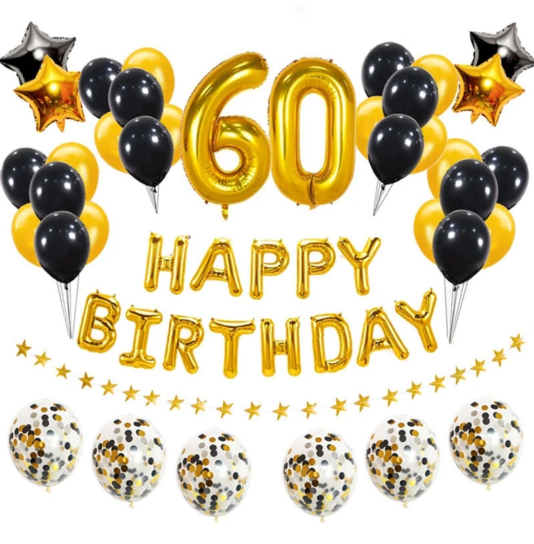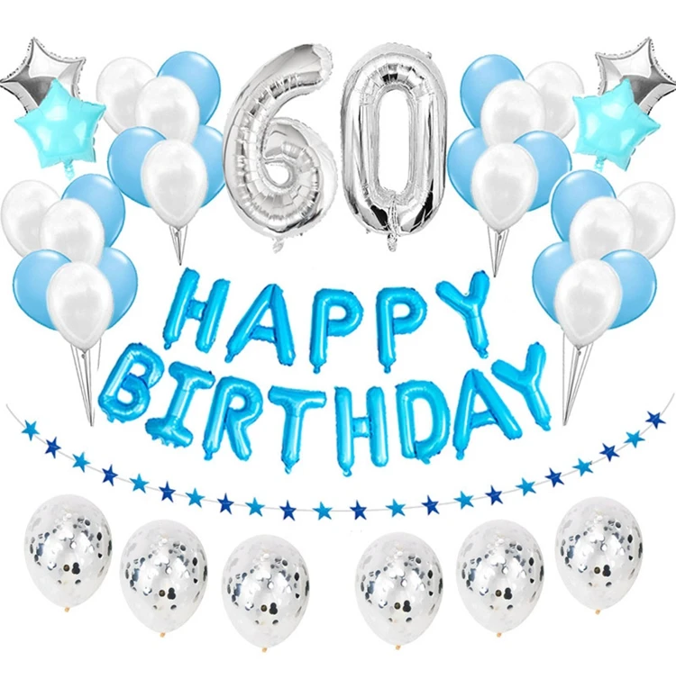 38 шт.компл. 60-й день рождения шары-цифры 60 лет День рождения укр...
