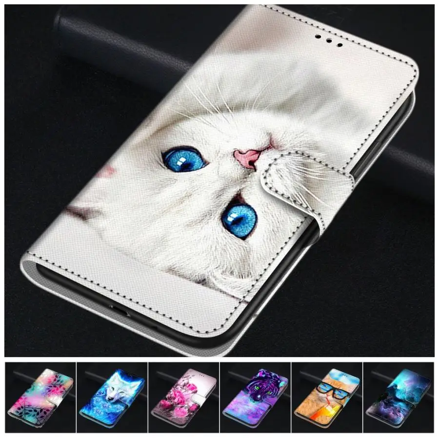 Детский кожаный чехол с карманом для карт для Redmi Note 8T Redmi K30 8 8A, стильный чехол-книжка для телефона, чехол с отпечатком пальца, котом, тигром, волком, мальчиком и девочкой P08F
