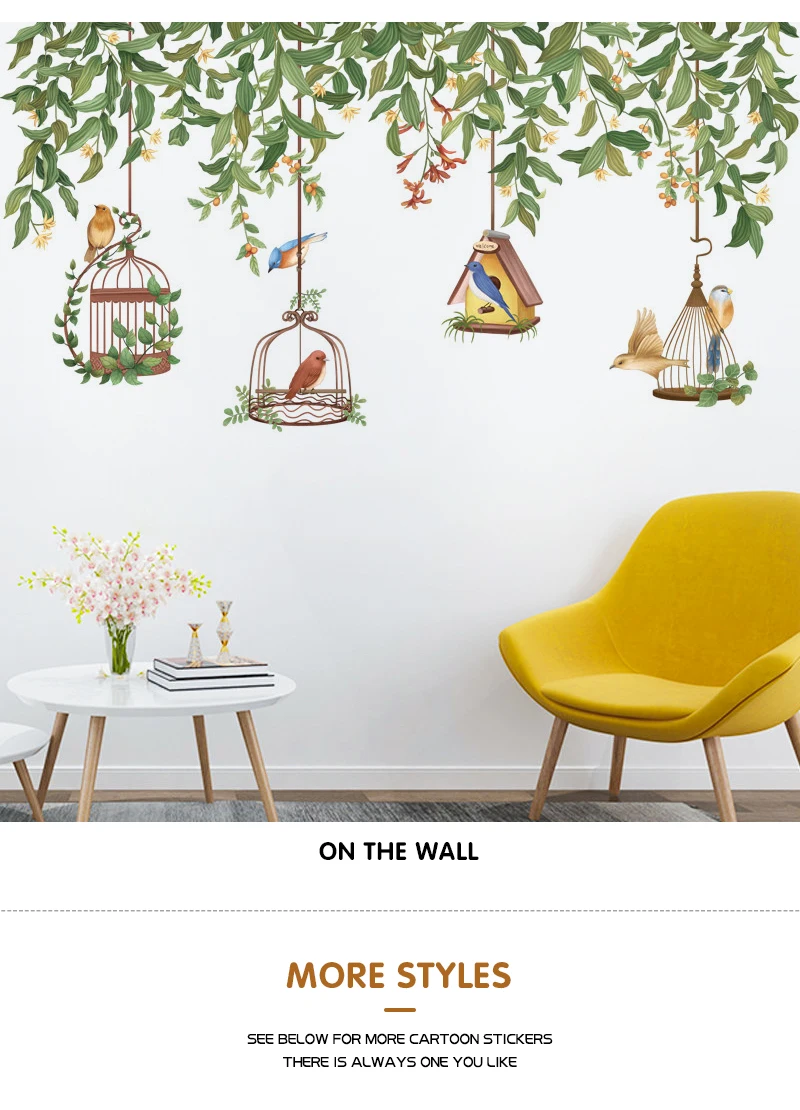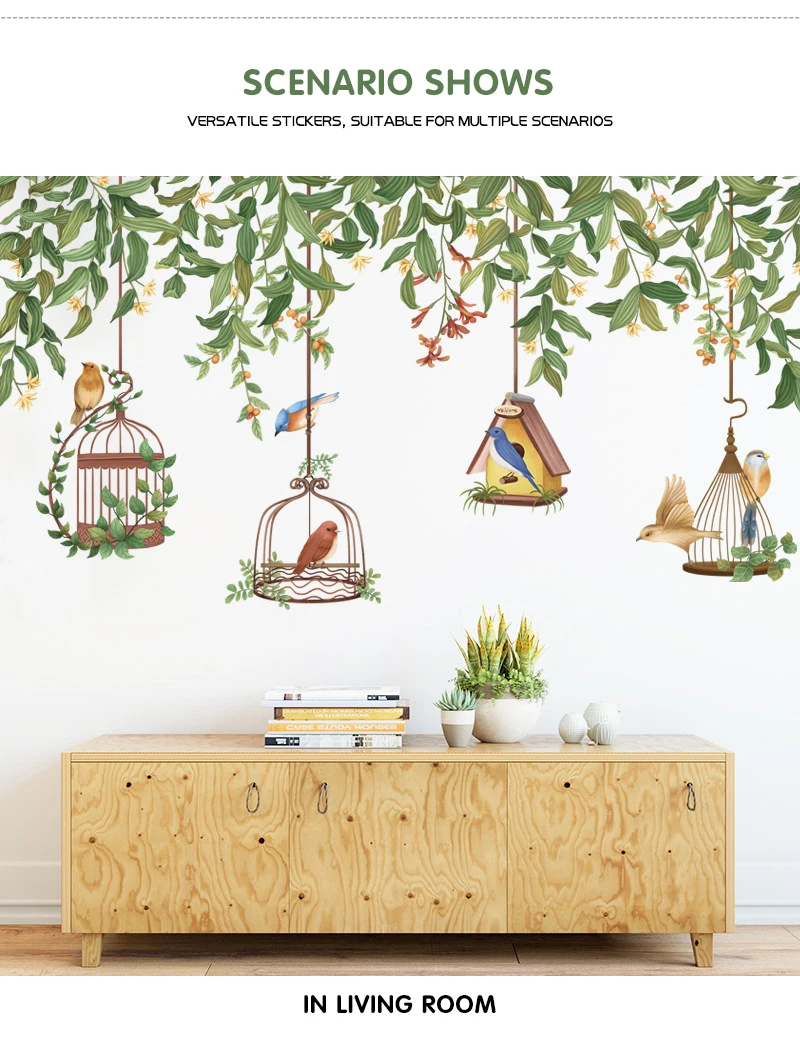 Клетка для птиц с лозой Стикеры для растений на стену, креативное украшение для маленькой гостиной, украшение для спальни, домашний декор, самоклеящиеся наклейки