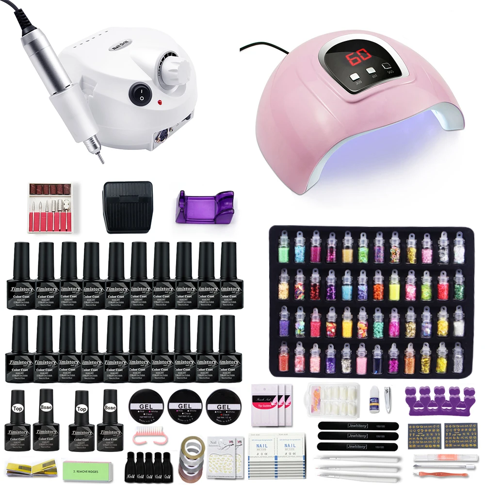 Набор для маникюра, 120 Вт, светодиодная УФ-лампа для ногтей, 20 цветов, набор гель-лаков для ногтей, 2 основы, 2 верхних геля, со сверлом для ногтей