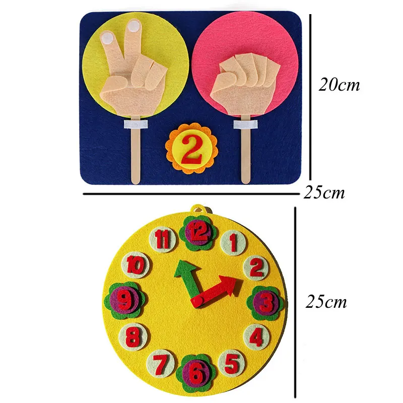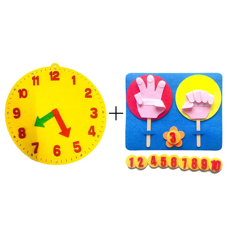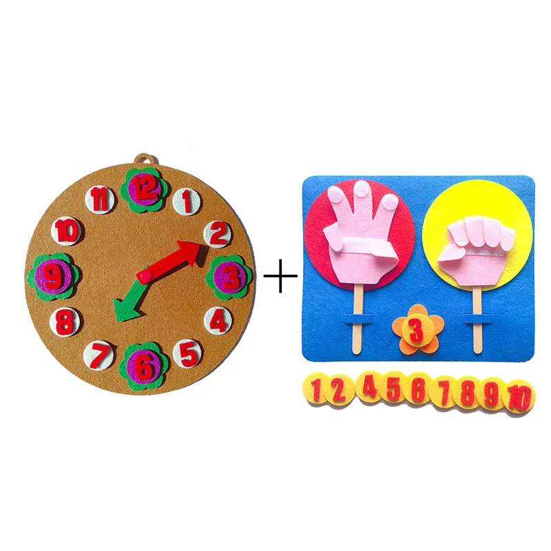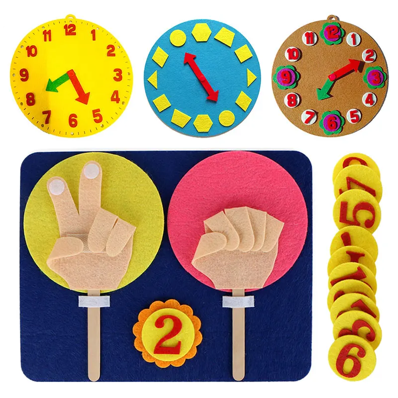 Цифровая арифметика для пальцев, игрушки Монтессори, фетровая ткань сделай сам, часы с жестами и точками, когнитивные Обучающие игрушки, 1-10 дюймов