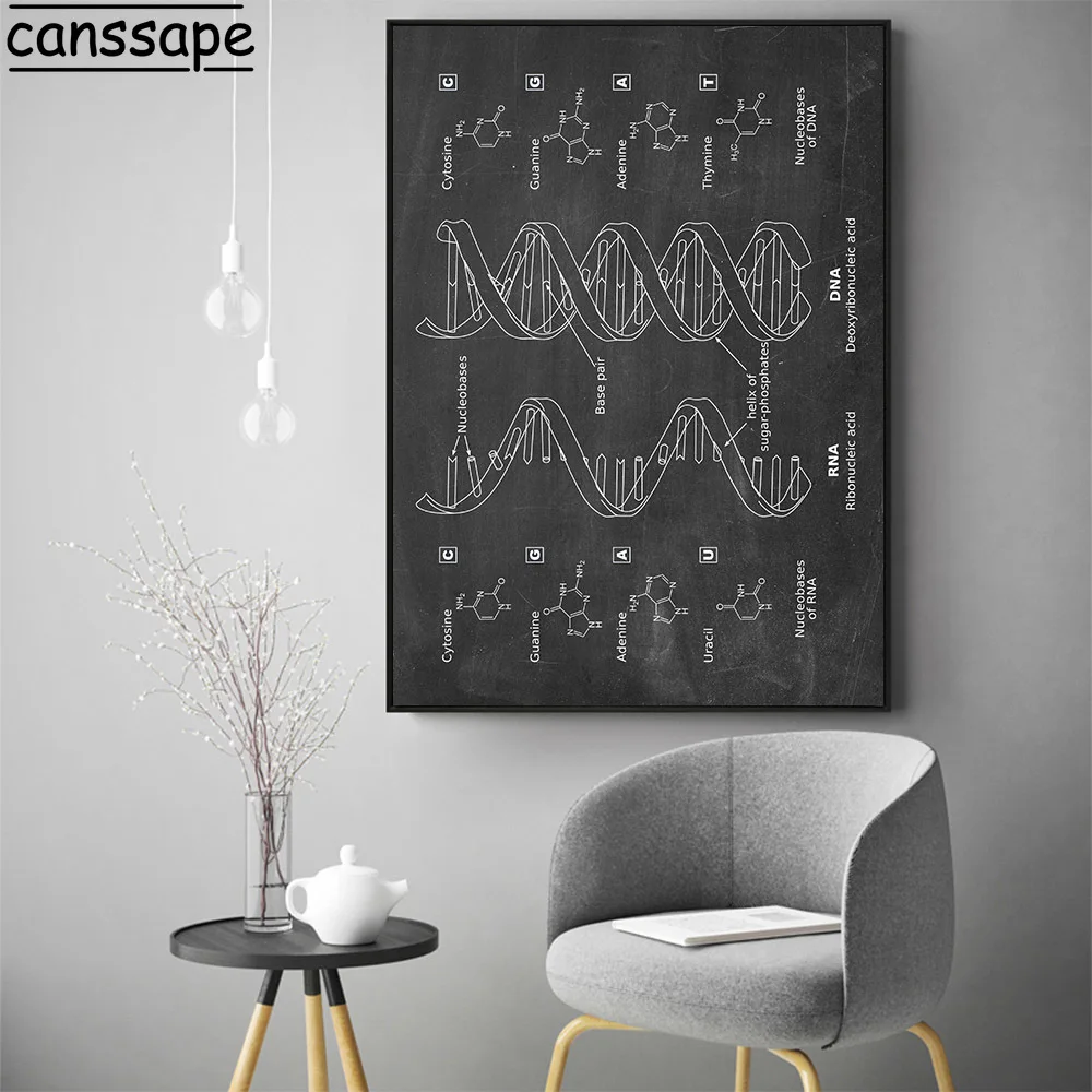 Плакат ДНК, биология, искусство, принт, генетика, холст, плакаты, винтажные чертежи, картины, Современное украшение для медицинского офиса
