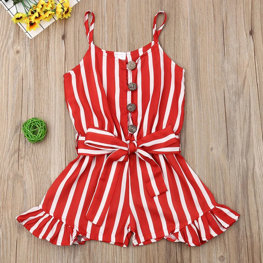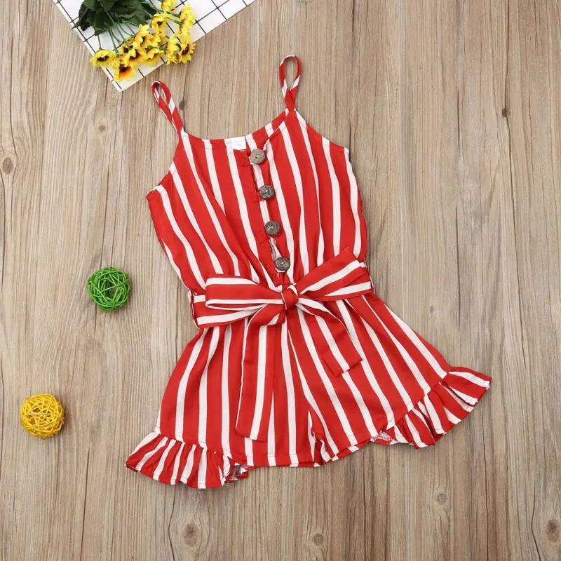 Детский комбинезон в полоску для девочек 3-8 лет, летние комбинезоны без рукавов для девочек, детские костюмы, красные платья
