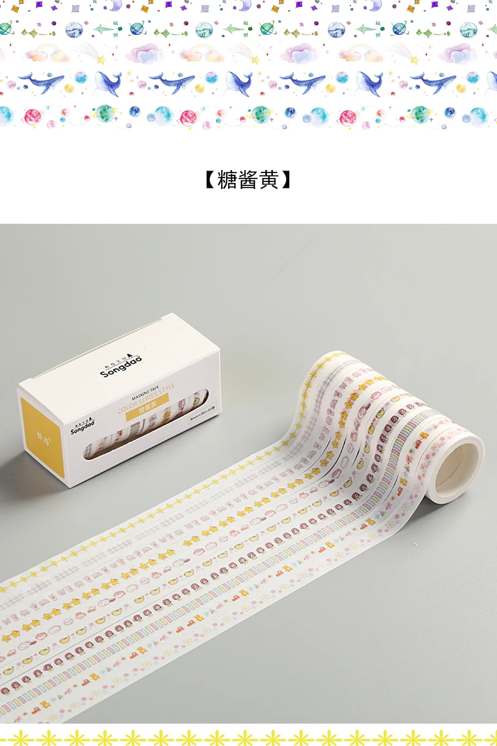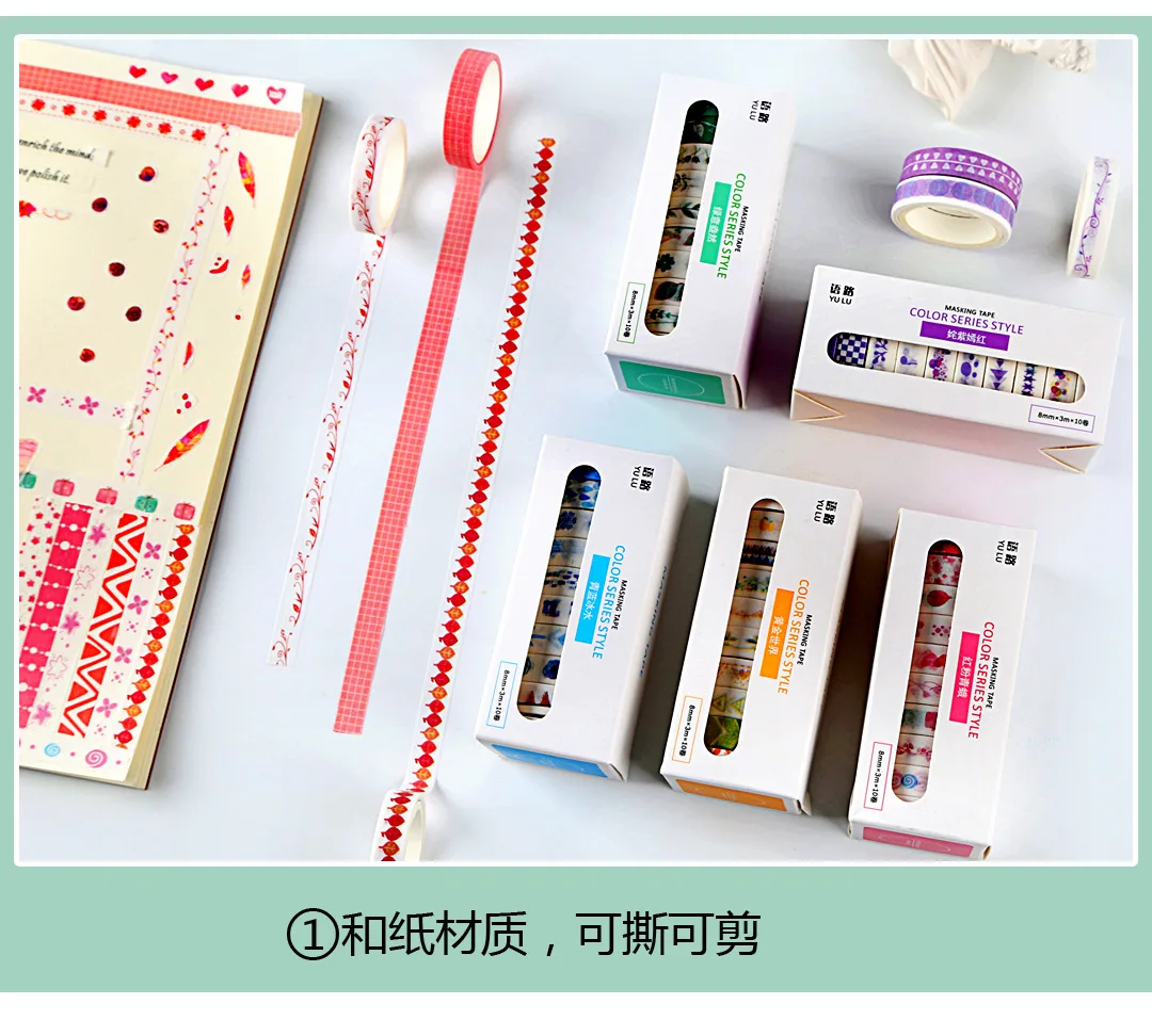 10 шт.лот Базовая цветная серия, набор клейких лент Washi для пункт...