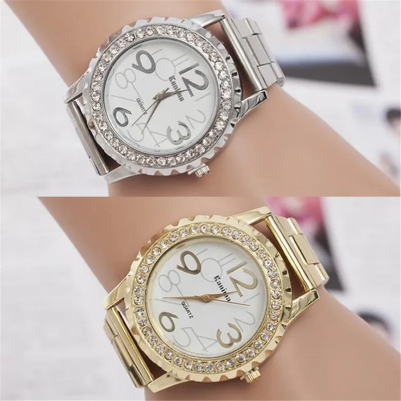Часы наручные женские с большим циферблатом, из нержавеющей стали