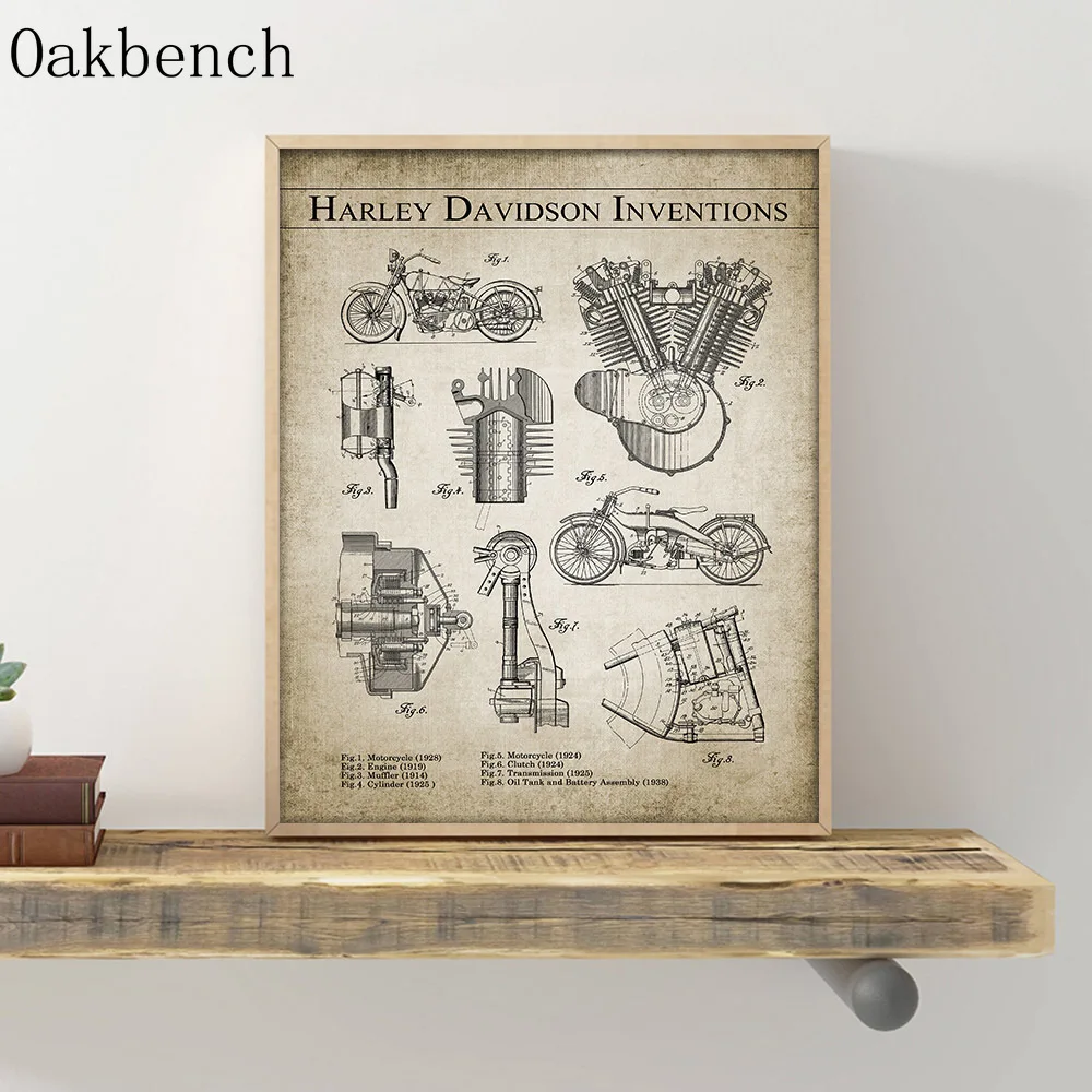Мотоцикл изобретения настенные художественные плакаты двигатель патент живопись машиностроение плакат ретро настенные картины украшение спальни