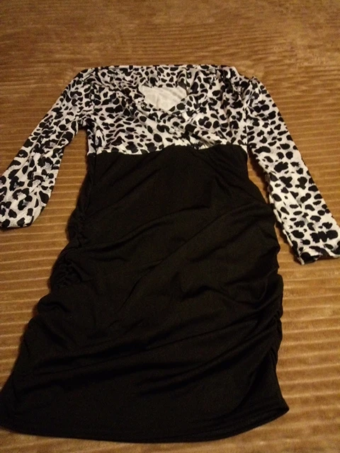 Женское сексуальное коктейльное мини-платье с V-образным вырезом и леопардовым принтом Характеристики:Вы можете потянуть вырез, чтобы получить глубокий v-образный вырез, сексуальный и очаровательный.Облегающее платье облегает ваши изгибы, делая вашу фигуру откровенной.Подходит вечерние, банкета, коктейля, ночного клуба и т. д. Тип: ПлатьеТип размера: ОбычныйПол: женщинМатериал: полиэстер, спандексСтиль: сексуальныйТип шеи: V-образный вырезДлина рукава: длинный рукавДлина платья: мини-платьеУход За Одеждой: ручная стиркаОсобенности: Леопардовый принт, облегающий, удобно носитьДетали размера[Наш Размер S] Бюст: 84 см/33,1 дюйма, Талия: 68 см/26,8 дюйма, бедра: 84 см/33,1 дюйма, Плечи: 38 см/15 дюймов, рукав: 58 см/22,8 дюйма, длина: 99 см/39 дюймов (прибл.)[Наш Размер M] Бюст: 88 см/34,6 дюйма, талия: 72 см/28,3 дюйма, бедра: 88 см/34,6 дюйма, Плечи: 39 см/15,4 дюйма, рукав: 59 см/23,2 дюйма, длина: 100 см/39,4 дюйма (прибл.)[Наш Размер L] Бюст: 92 см/36,2 дюйма, талия: 76 см/29,9 дюйма, бедра: 92 см/36,2 дюйма, Плечи: 40 см/15,7 дюйма, рукав: 60 см/23,6 дюйма, длина: 101 см/39,8 дюйма (прибл.)[Наш Размер XL] Бюст: 96 см/37,8 дюйма, талия: 80 см/31,5 дюйма, бедра: 96 см/37,8 дюйма, Плечи: 41 см/16,1 дюйма, рукав: 61 см/24 дюйма, длина: 102 см/40,2 дюйма (прибл.)[Наш Размер 2XL] Бюст: 100 см/39,4 дюйма, талия: 84 см/33,1 дюйма, бедра: 100 см/39,4 дюйма, Плечи: 42 см/16,5 дюйма, рукав: 62 см/24,4 дюйма, длина: 103 см/40,6 дюйма (прибл.) Примечания:Пожалуйста, обратитесь к нашей таблице размеров и выберите правильный размер.Настоящий цвет товара может незначительно отличаться от изображений на веб-сайте из-за таких факторов, как яркость монитора, яркость освещения и т. д. Посылка входит:1 х платье (другие не включены)