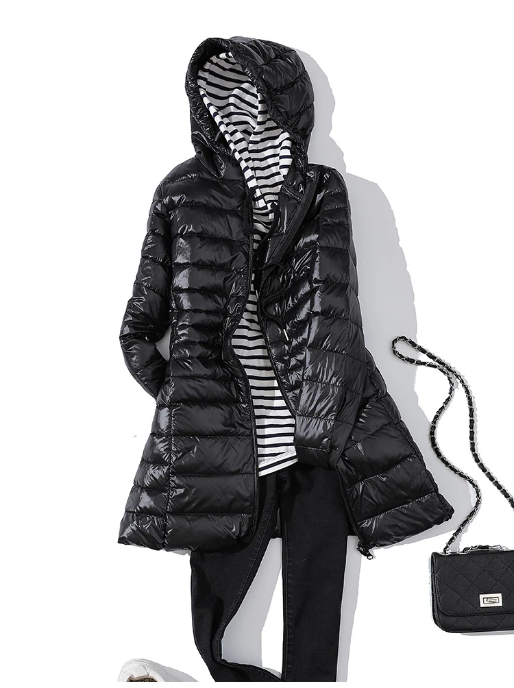 Куртка женская длинная ультралегкая на гусином пухе