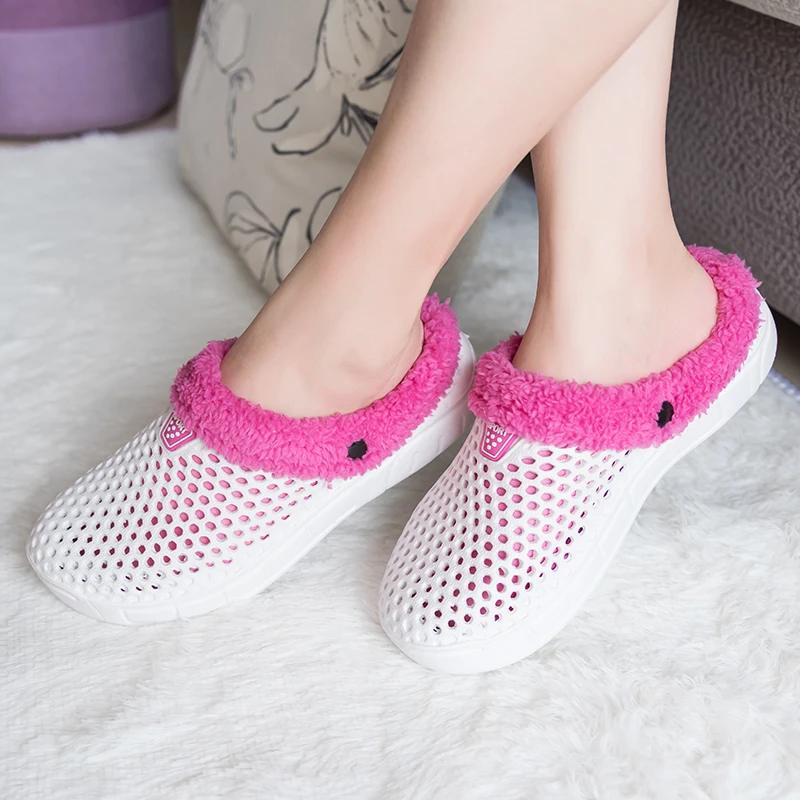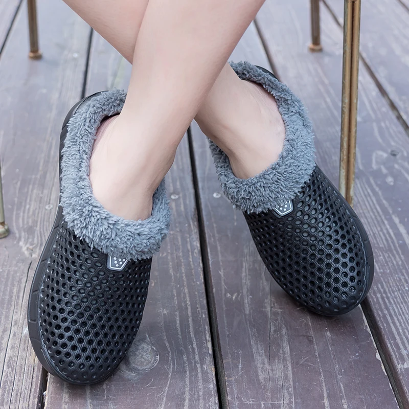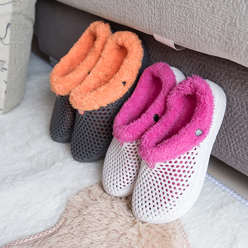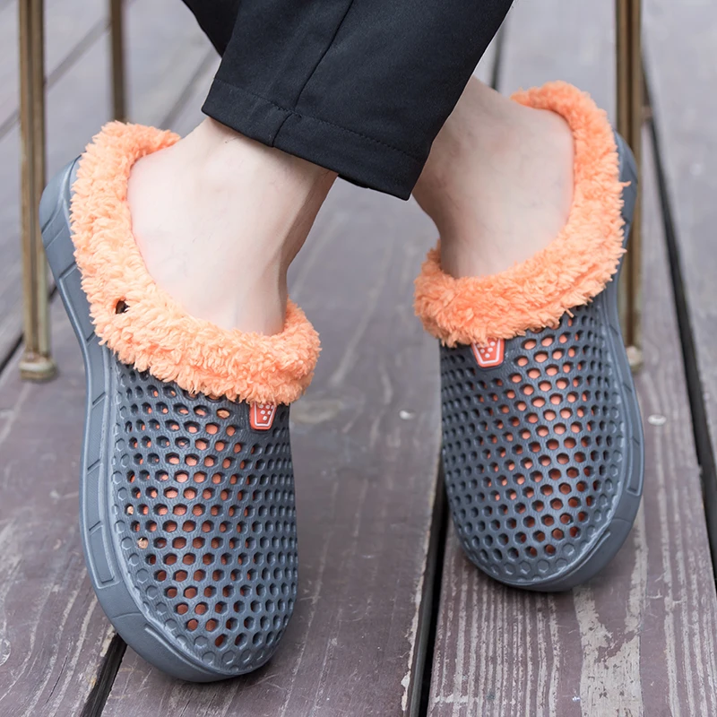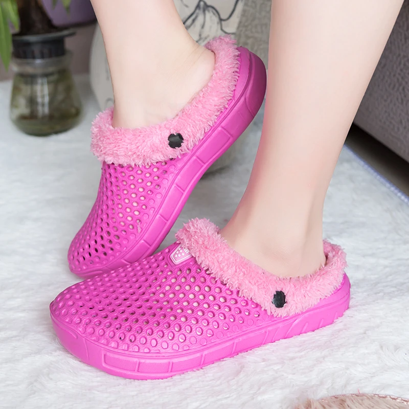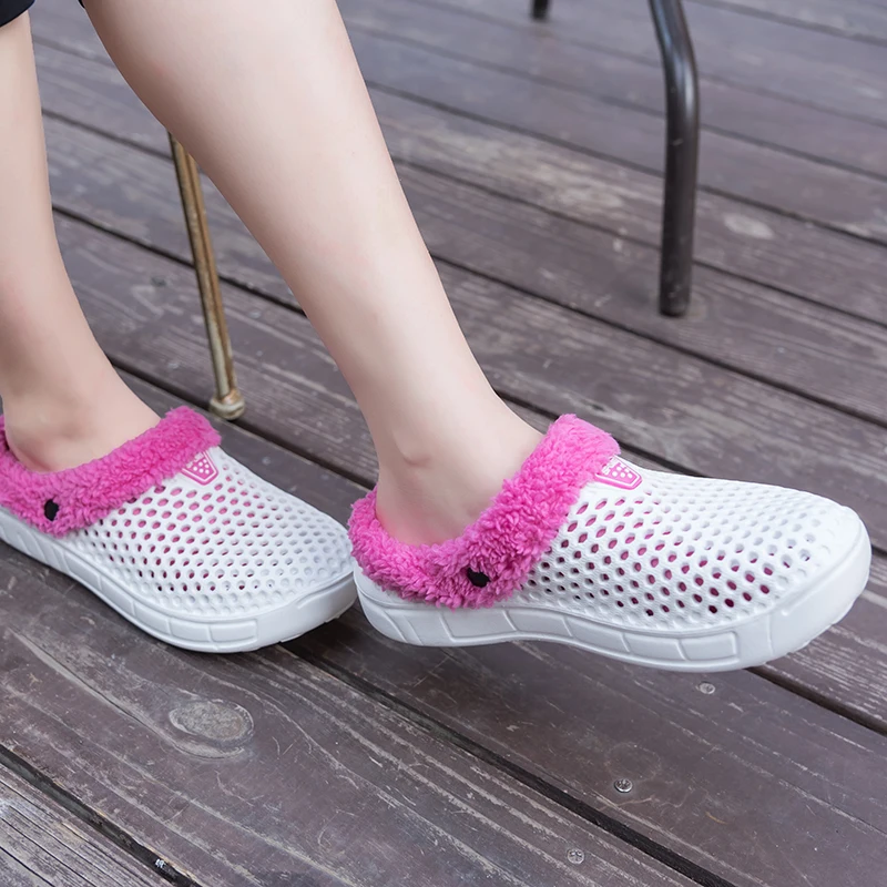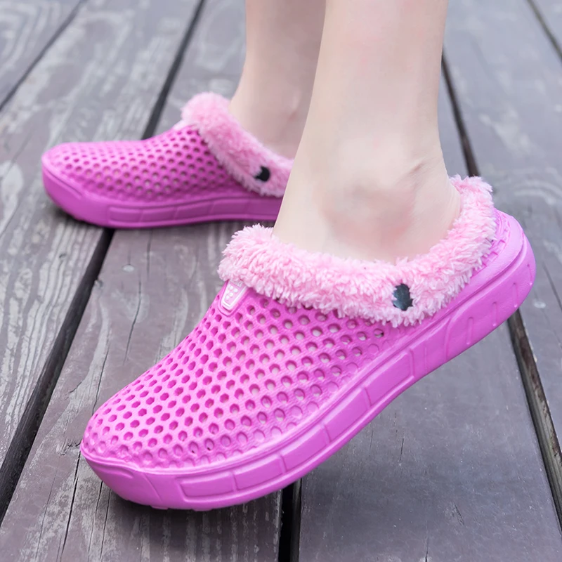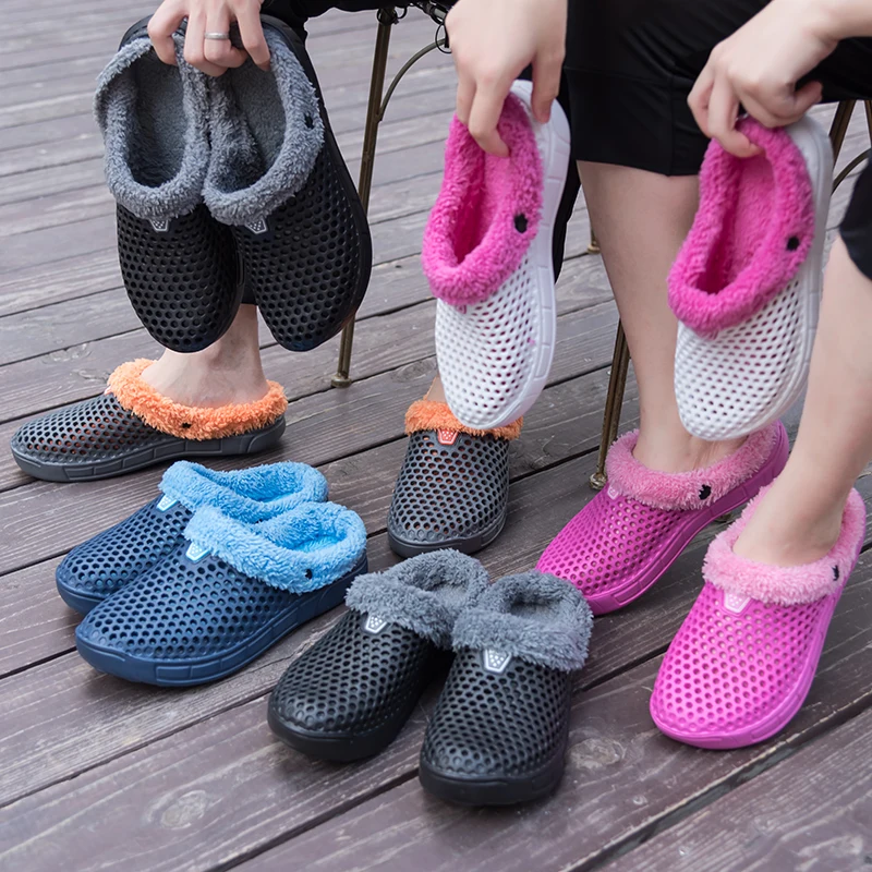 Женские туфли-сабо 36 45, зимняя обувь с отверстиями 2021, пляжные легкие меховые женские тапочки для дома и улицы, мужская повседневная обувь