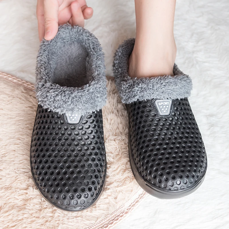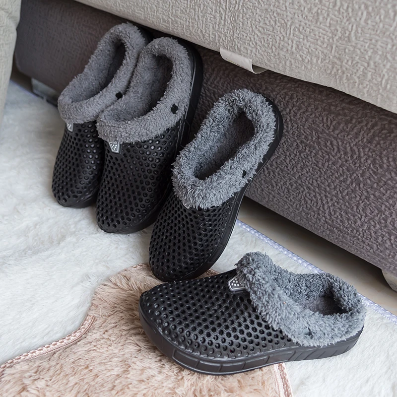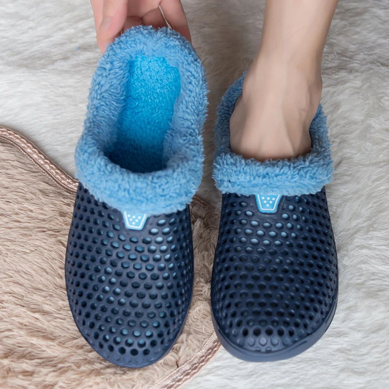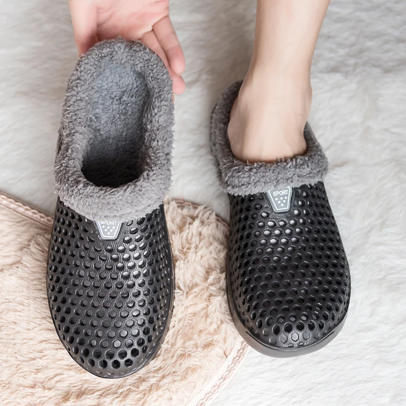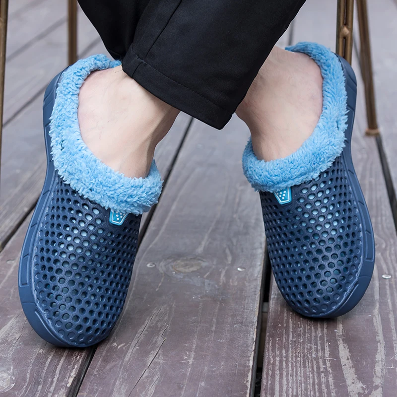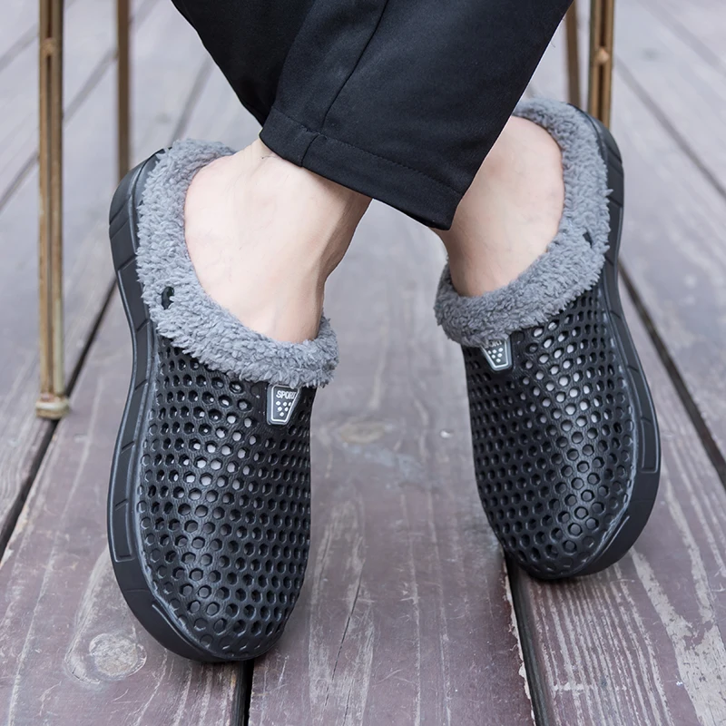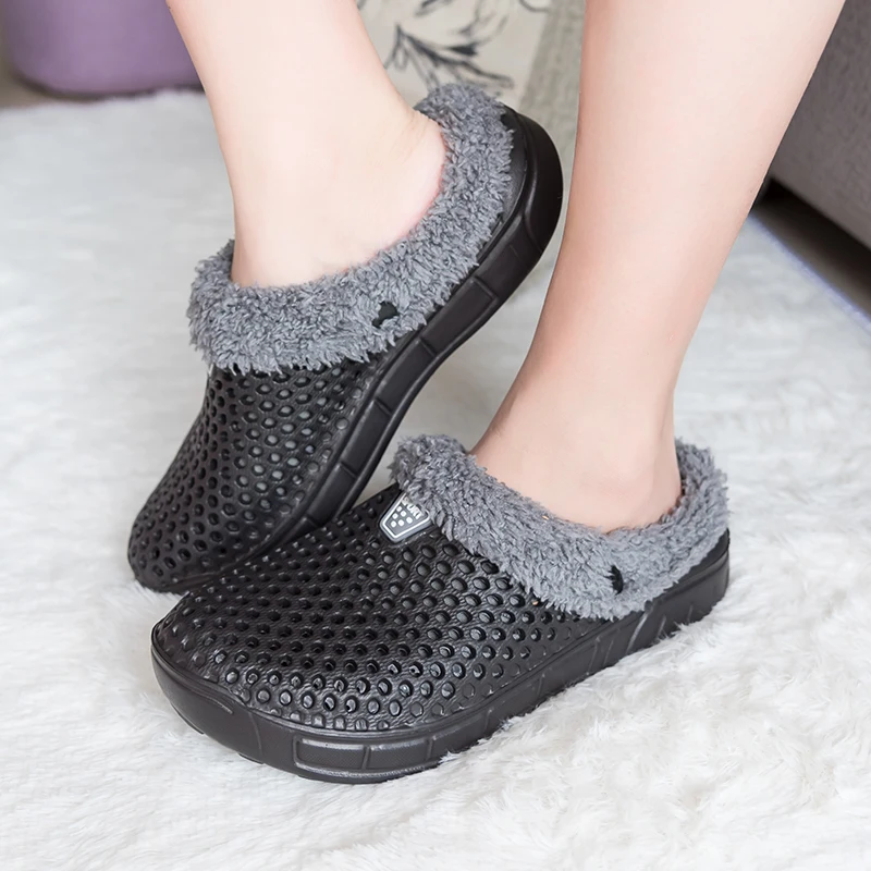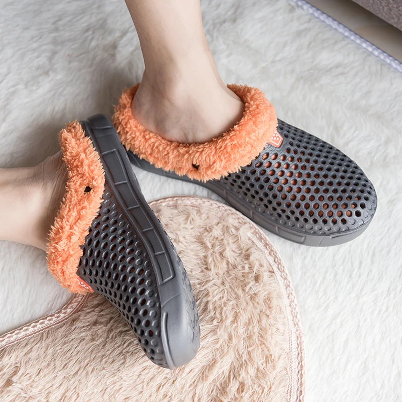 Женские туфли-сабо 36 45, зимняя обувь с отверстиями 2021, пляжные легкие меховые женские тапочки для дома и улицы, мужская повседневная обувь