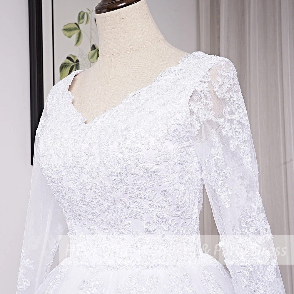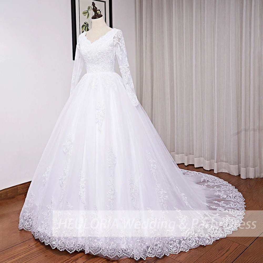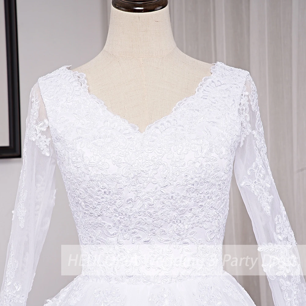Винтажное бальное платье, свадебное платье с длинным рукавом и V-образным вырезом, женское кружевное платье с аппликацией на шнуровке, мусульманское свадебное платье невесты, vestido De Noiva