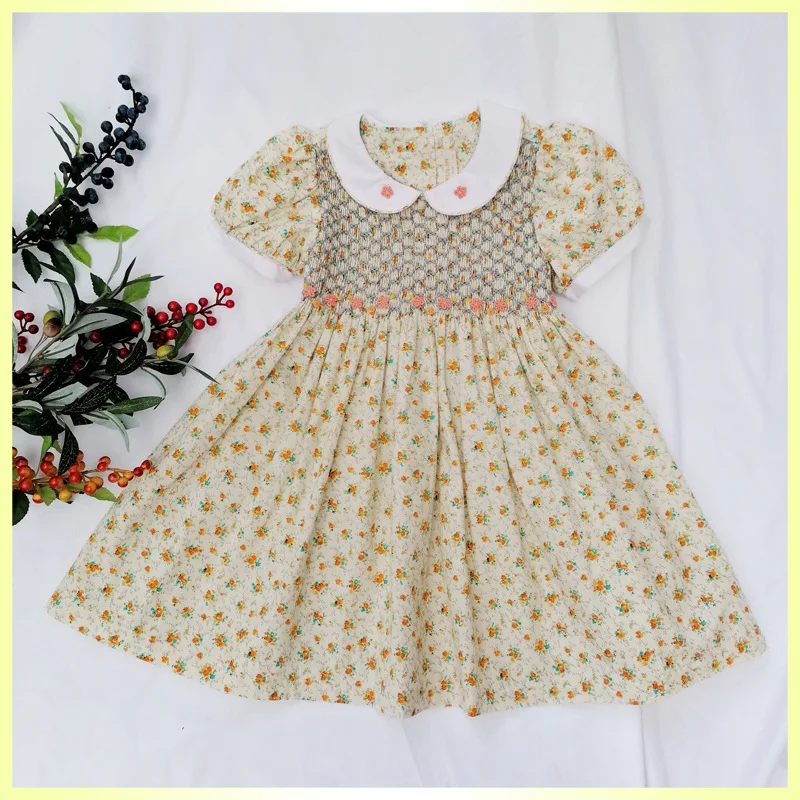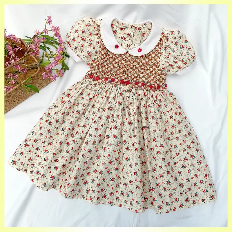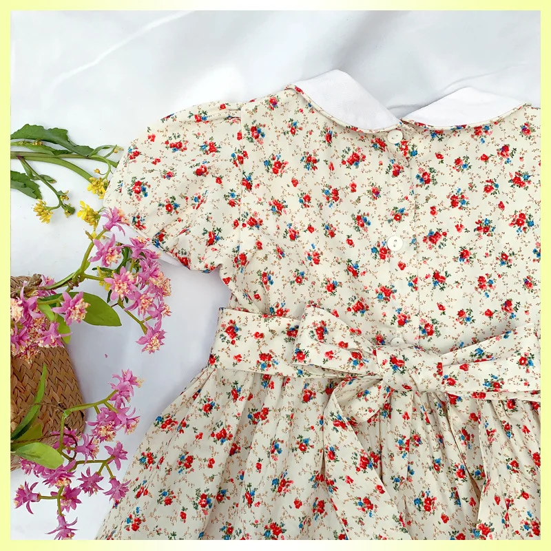 Детское летнее платье для девочек, винтажное платье принцессы с цветочным рисунком, модель 2022 года, платья ручной работы для детей