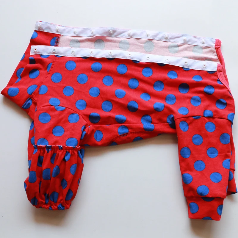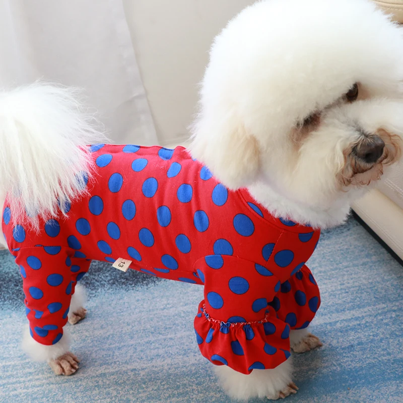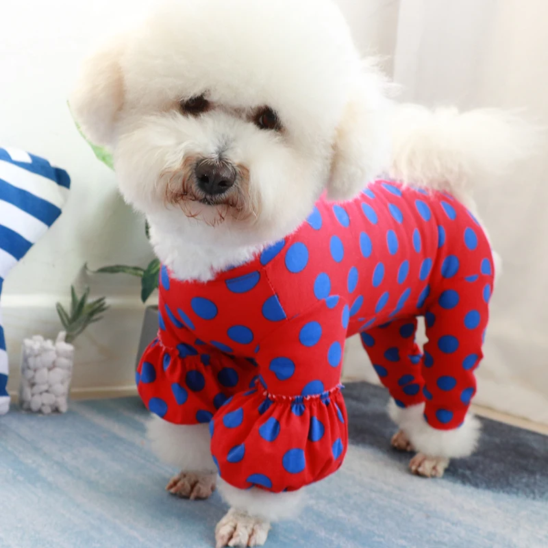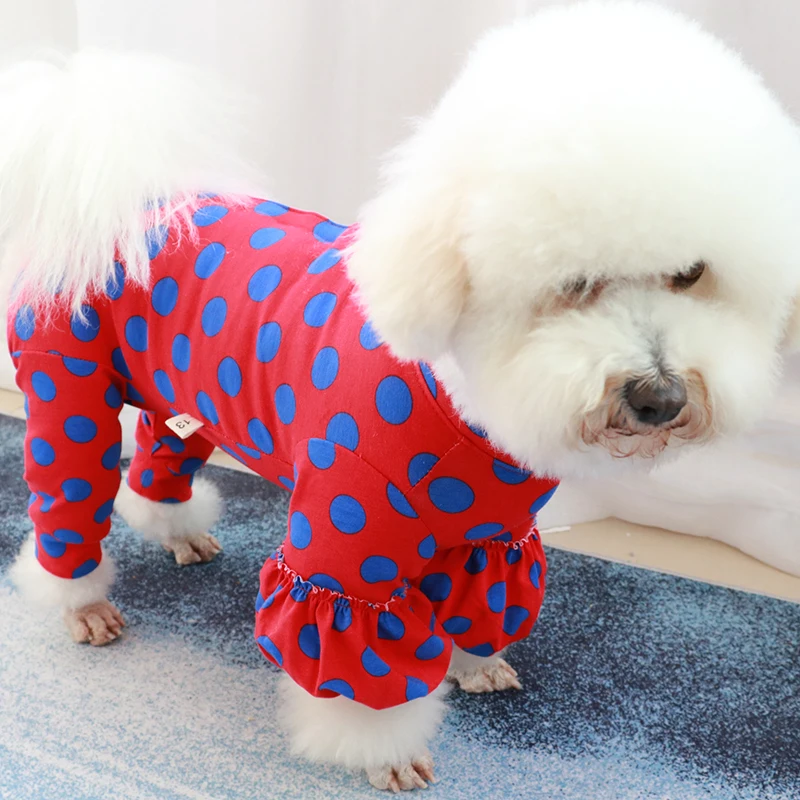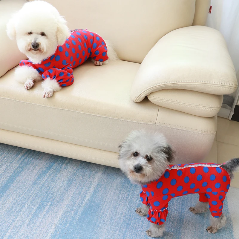 Комбинезон для собаки тонкая 100% хлопковая одежда для щенков красная комбинезон в горох Пижама для защиты живота для маленького свитер для собаки пуделя чихуахуа