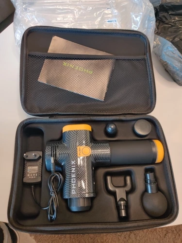 Удобная упаковка. Функциональный массажный пистолет. При транспортировке кейс немного помялся, но множество пакетов с воздушной подушкой спасли устройство! Есть небольшой непрокрас рядом с движущейся частью, на функционал не влияет. Рекомендую продавца!
