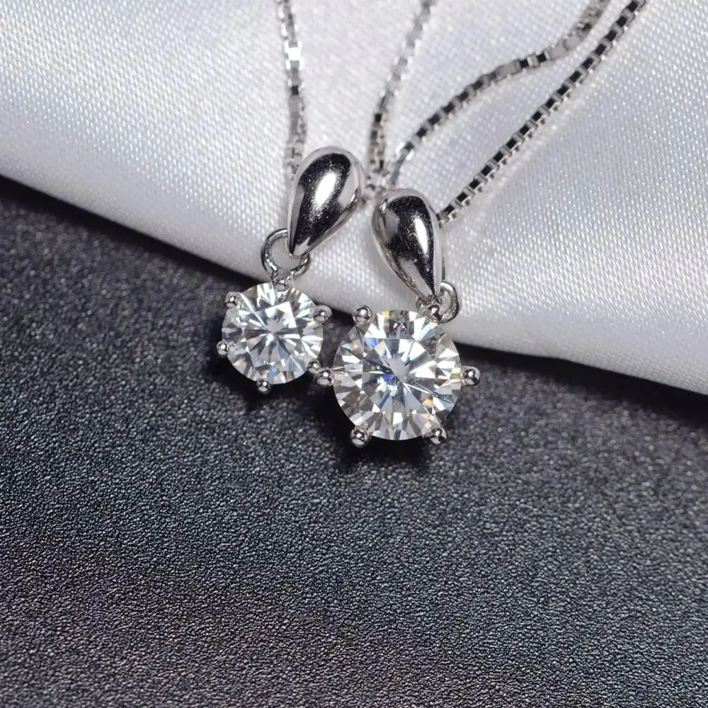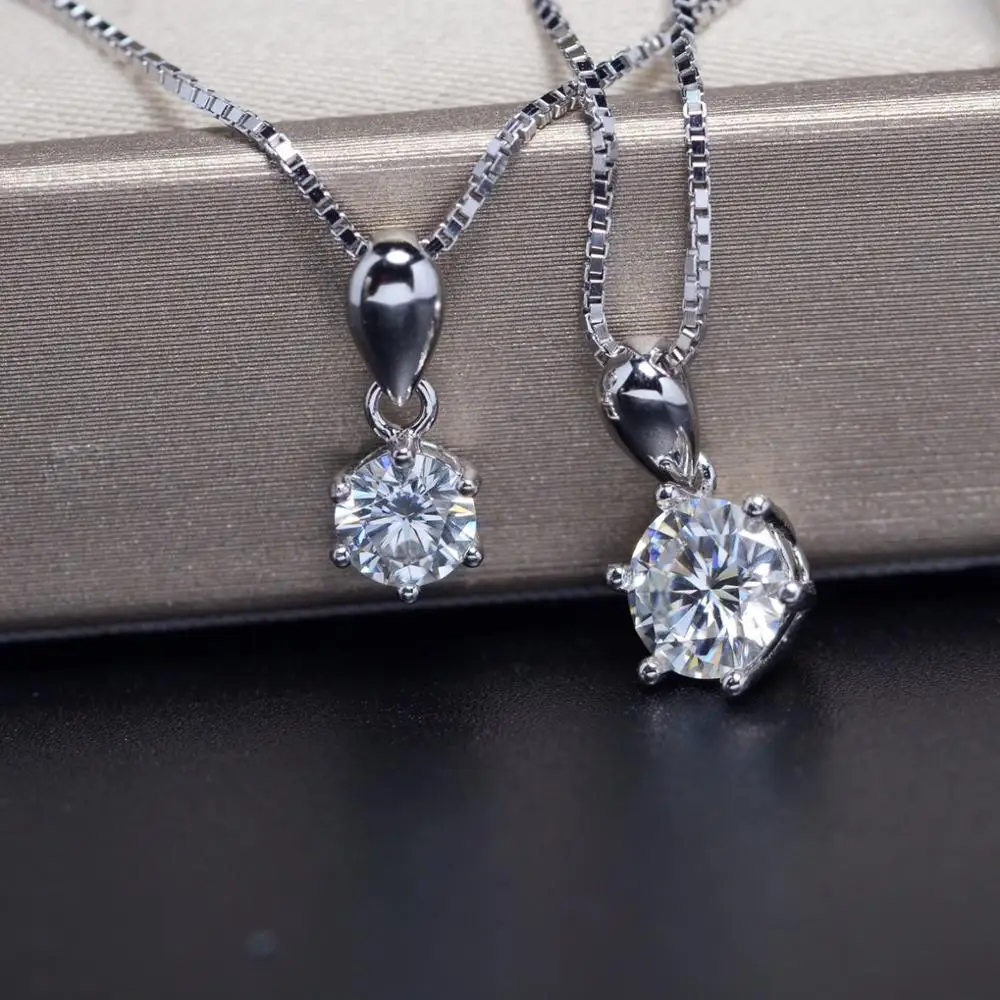 Женское классическое ожерелье с бриллиантами VVS1, кулон из серебра 925 пробы с круглой подвеской моисанита диаметром 0,5-2 карата