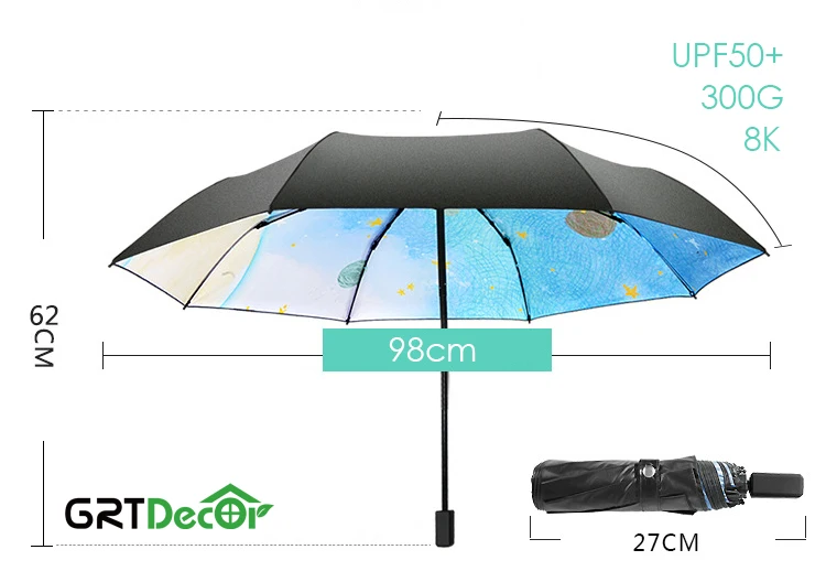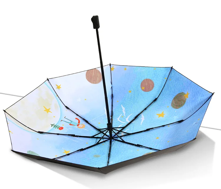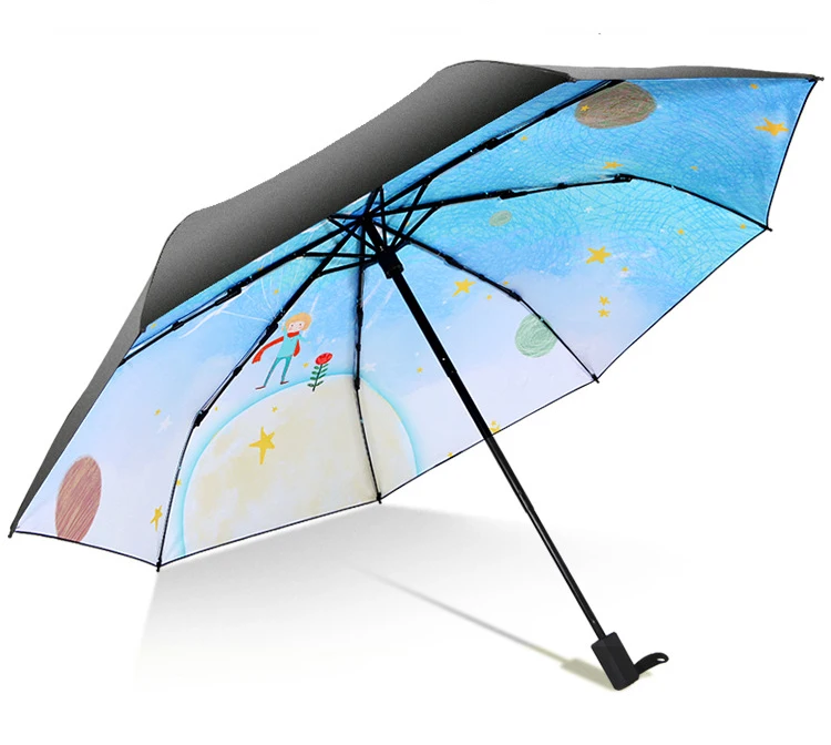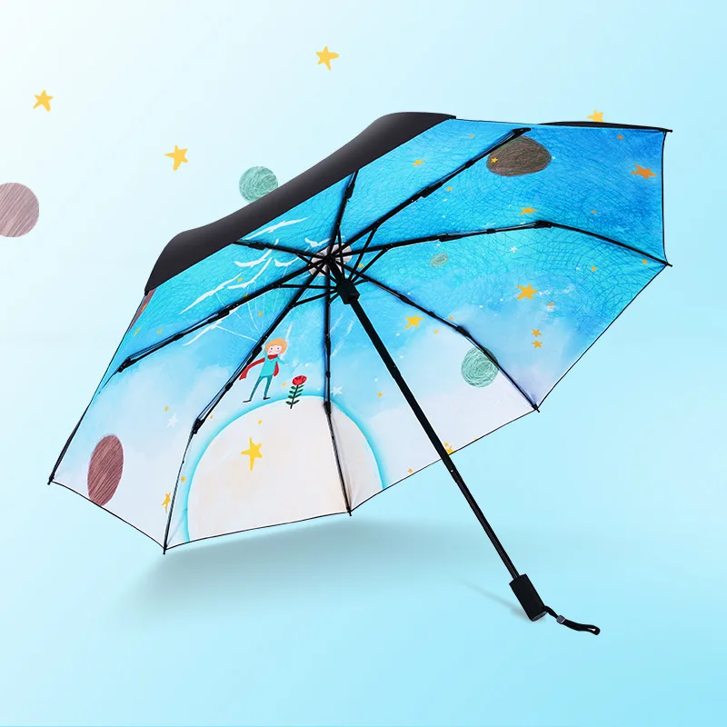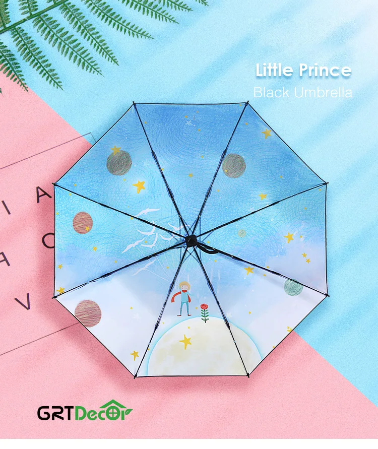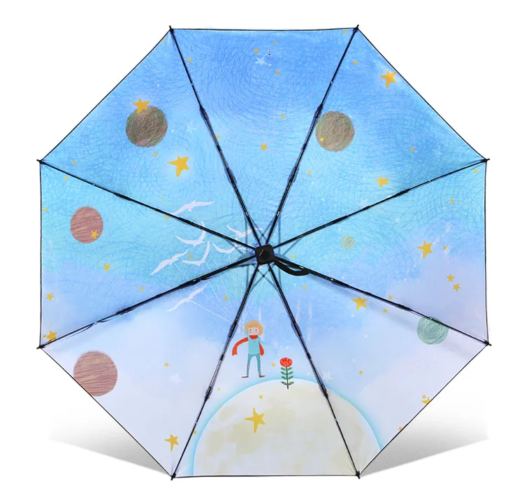 Новинка 2020, зонты от солнца Little Prince для женщин, зонтик от дождя и солнца для леди, 3 складных зонтика с 8 ребрами, солнцезащитный зонтик, Ветроустойчивая рамка, парапле