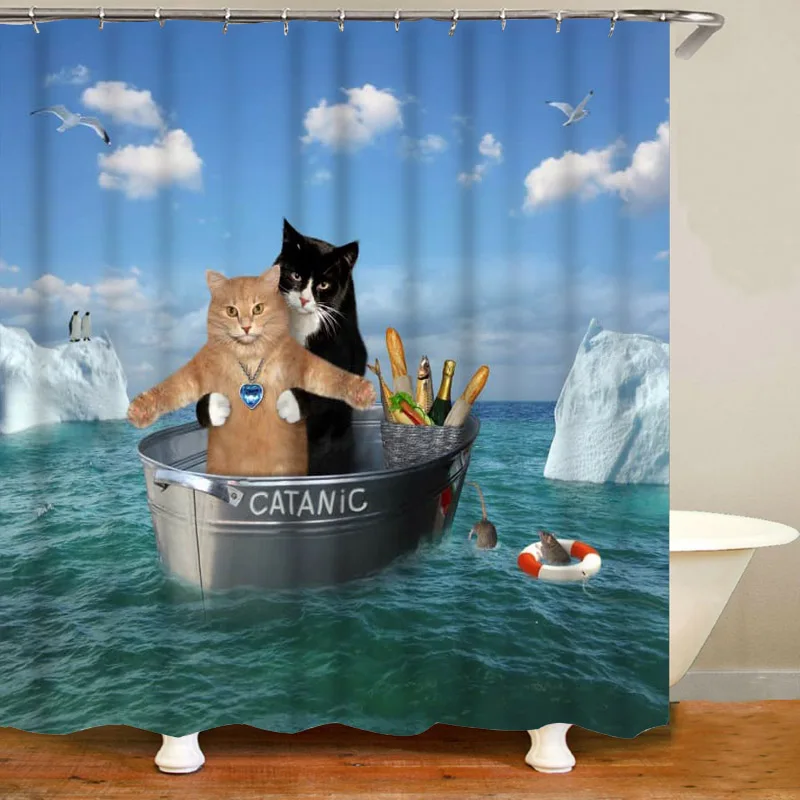 Занавеска для душа с 3D забавным котом, собакой, занавеска для ванной, занавеска для ванны с парусными животными, набор ковриков, декор для котят, домашних животных