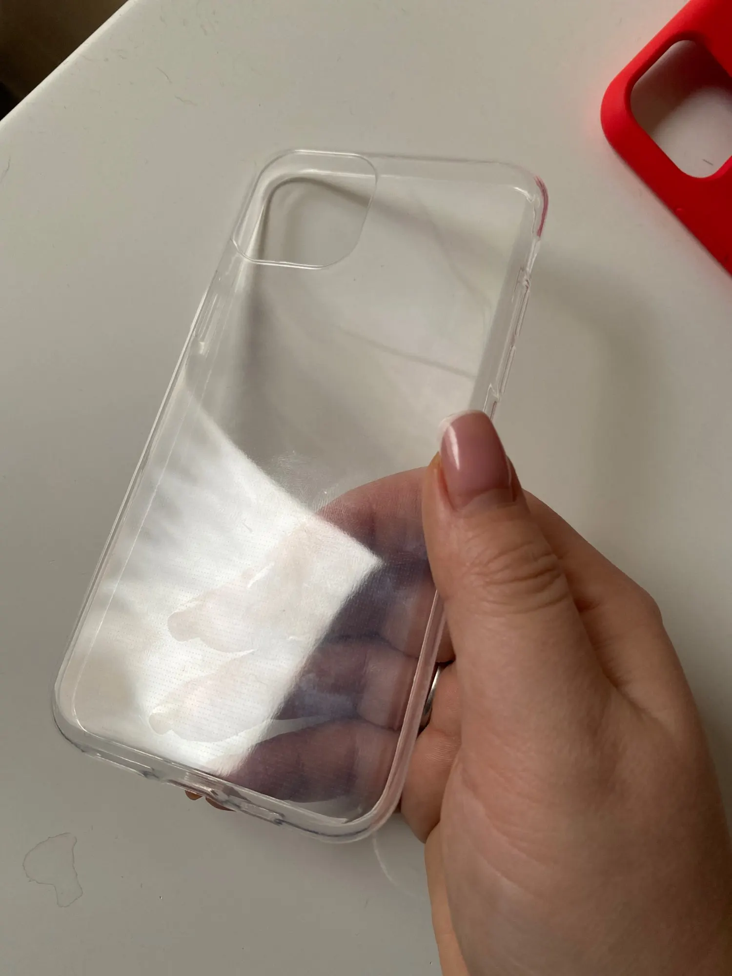 чехол шел долго. 1,5 месяца, думала уже не придет, ибо было написано, что товар доставлен, хотя естественно у меня его не было, но через пару дней забрала из ящика. сам чехол с беловатыми точечками, но все равно прозрачный. качество хорошее, не пахнет. единственный минус - долгая доставка