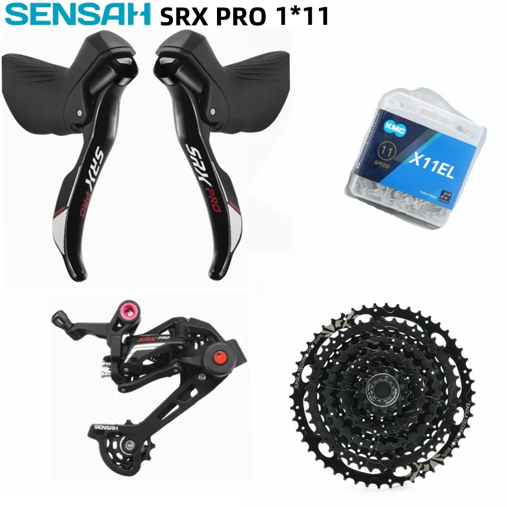 SRX Pro Шестерня/тормозной рычаг 1x1 1 Скорость Черный рычаг переключения передач набор и задний переключатель & KMC X11 цепь и racework CSRX8 кассеты (4 шт.) для гравийного велосипеда