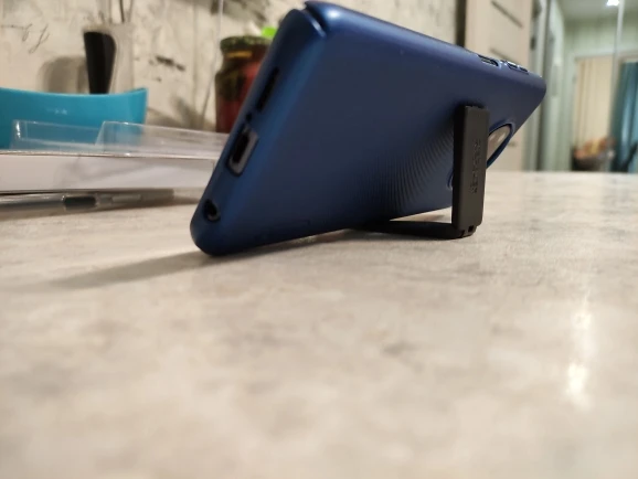 Чехол отличный,держится четко и все защищает,но есть недостаток на гладких поверхностях на боку при просмотре видео не держится,совет изготовителям, боковую поверхность чехла где нет кнопок надо покрыть софт тач пластиком или что то вроде резины,что бы смарт стоял уверенно на боку,зная эту проблему изготовитель даёт в комплекте подставку,но это тоже не выход.