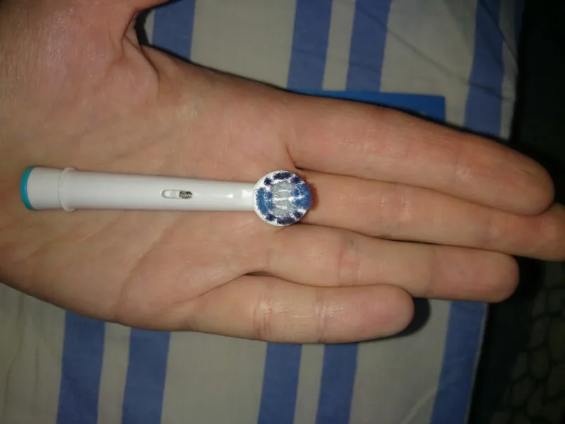 пришёл на почту, забрал, упаковка стандартная, всё в целостности и сохранности. пошел примерять на щетку, заоодно думаю почищу рот и охуел!!! чистит это мало сказано, выбивает все что есть во рту к чертям. ставлю 5 баллов, десна травмированы конкретно