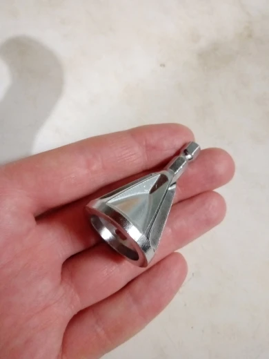 Так себе инструмент, тупые грани.Просто железка под конус с концевиком для шуруповёрта.