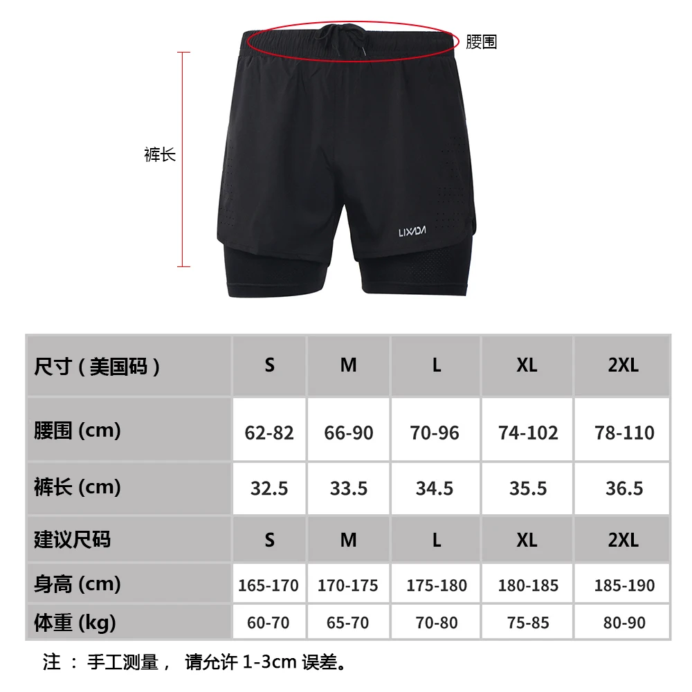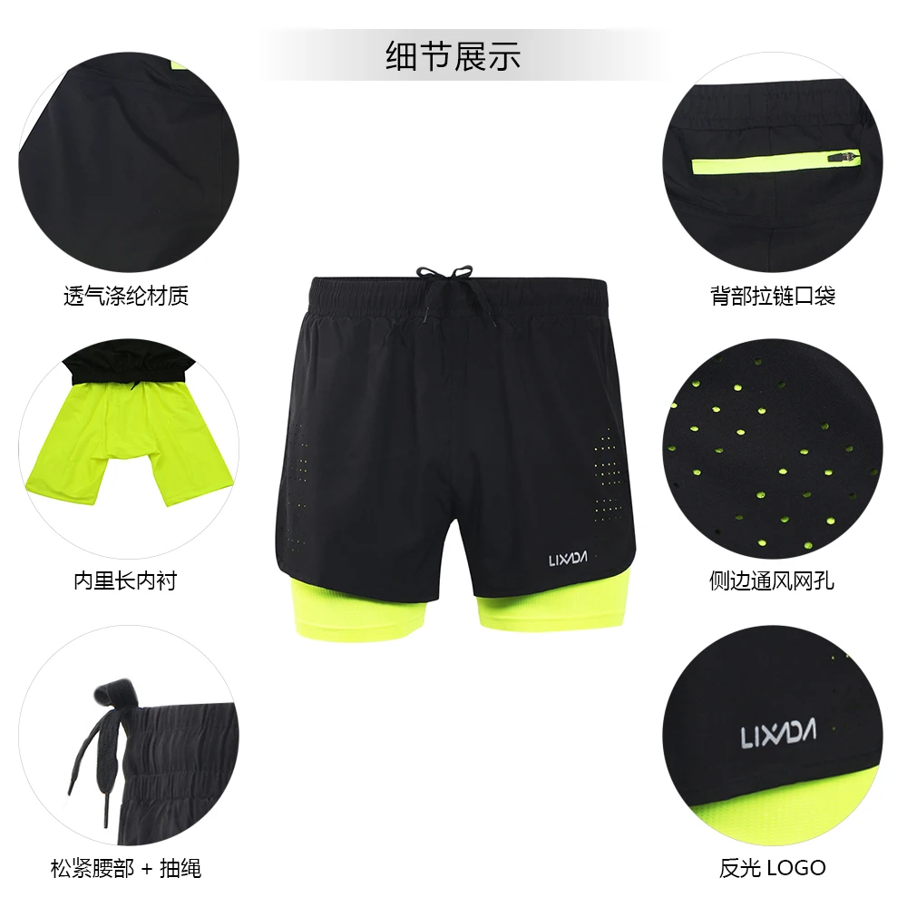 Мужские шорты для бега 2 в 1 Lixada, быстросохнущие дышащие шорты для тренировок, велосипедные шорты с более длинной подкладкой для бега