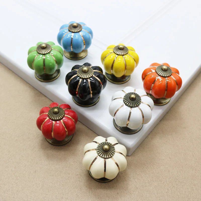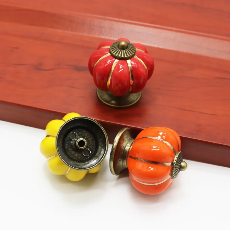 Тыквенные керамические ручки 40 мм ручки для ящиков дверные ручки для шкафа с одним отверстием ручки для шкафа с винтами мебельные ручки