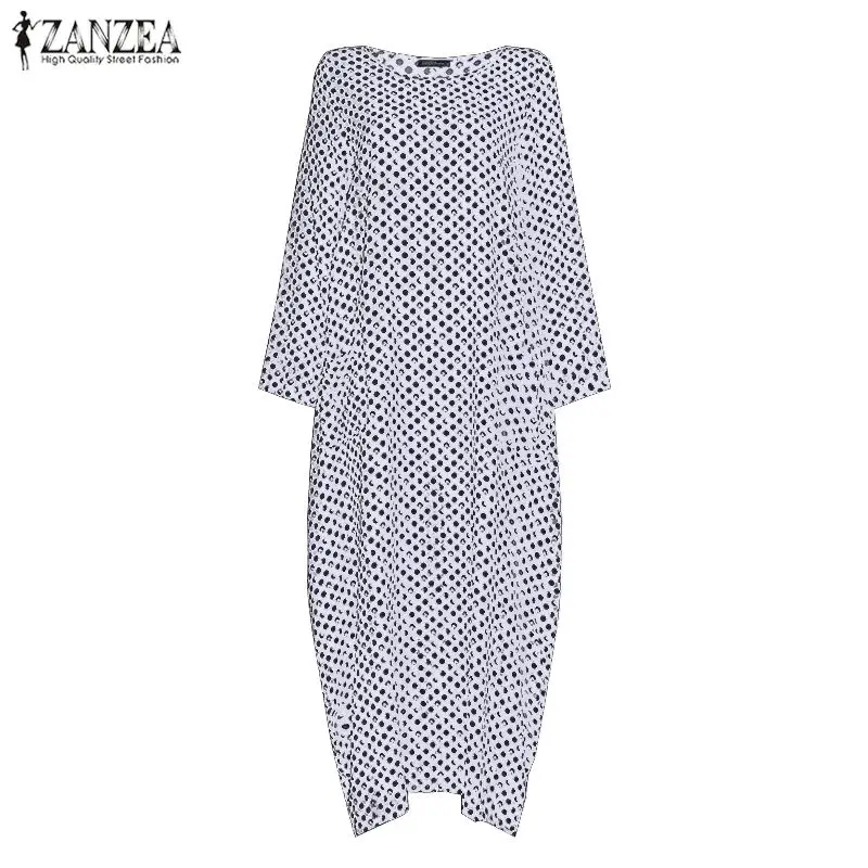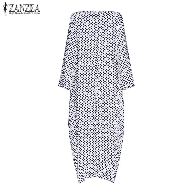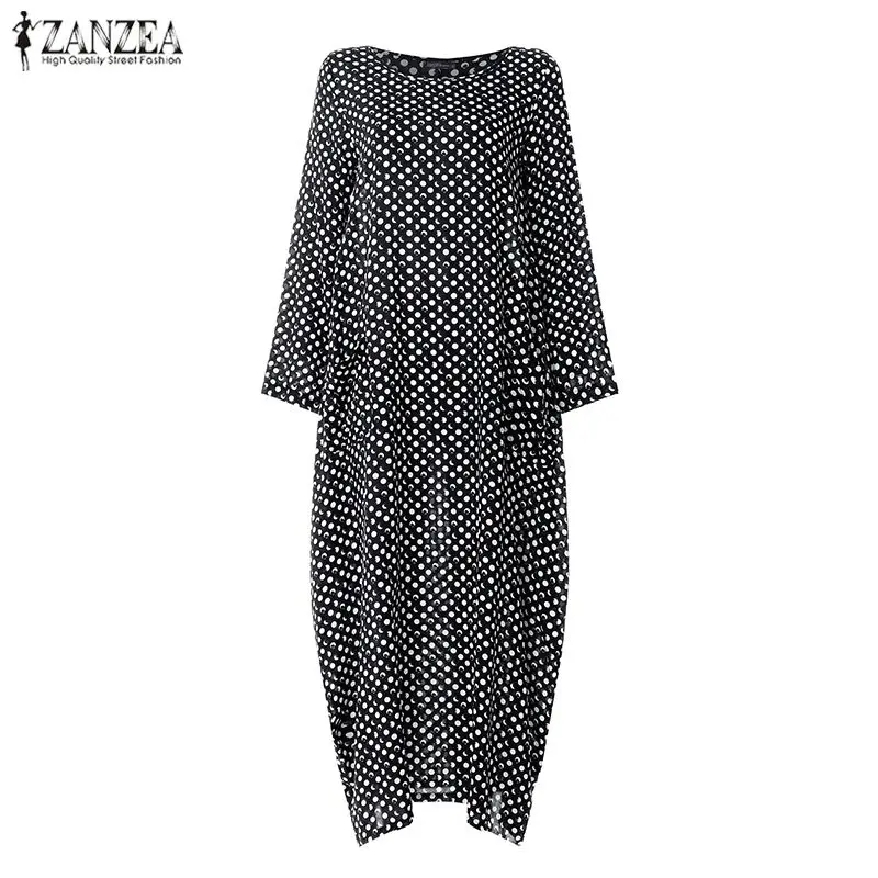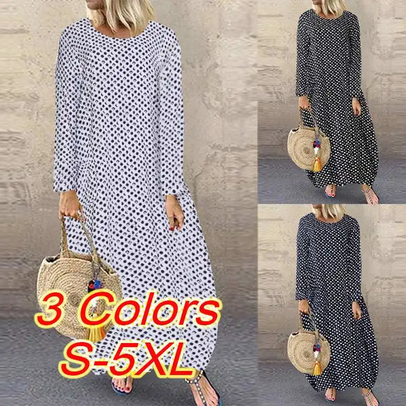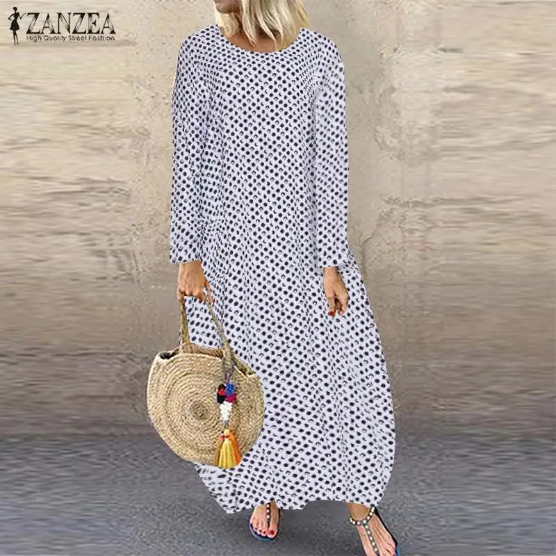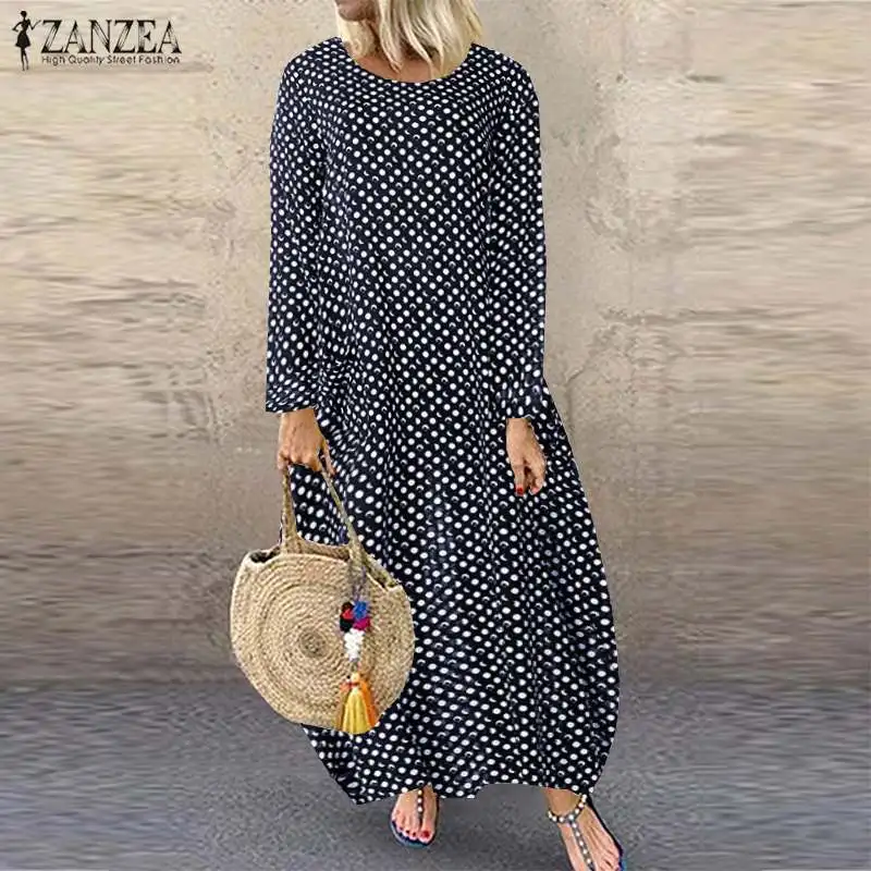 Модное платье-макси в горошек, Женский Осенний сарафан ZANZEA 2022, богемная туника с длинным рукавом, женское платье с круглым вырезом