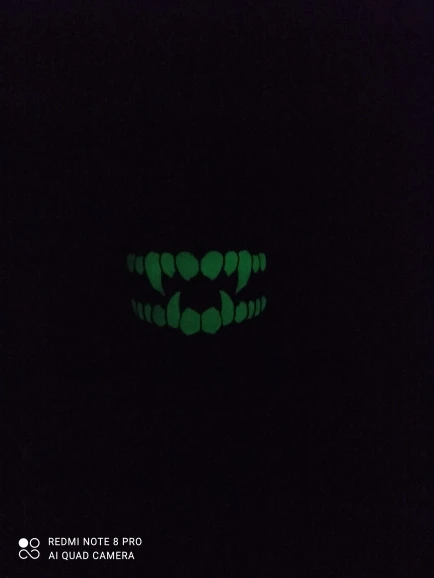 Вне зависимости от короны, маски быстро появились. Выглядит точно так же, как на фотографиях, и они светятся в темноте. Конечно, вы должны оставить их под воздействием солнечного света в течение нескольких часов, а затем, когда наступает ночь, эти неприятные зубы светятся в темноте. Очень круто!