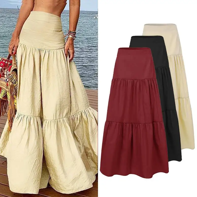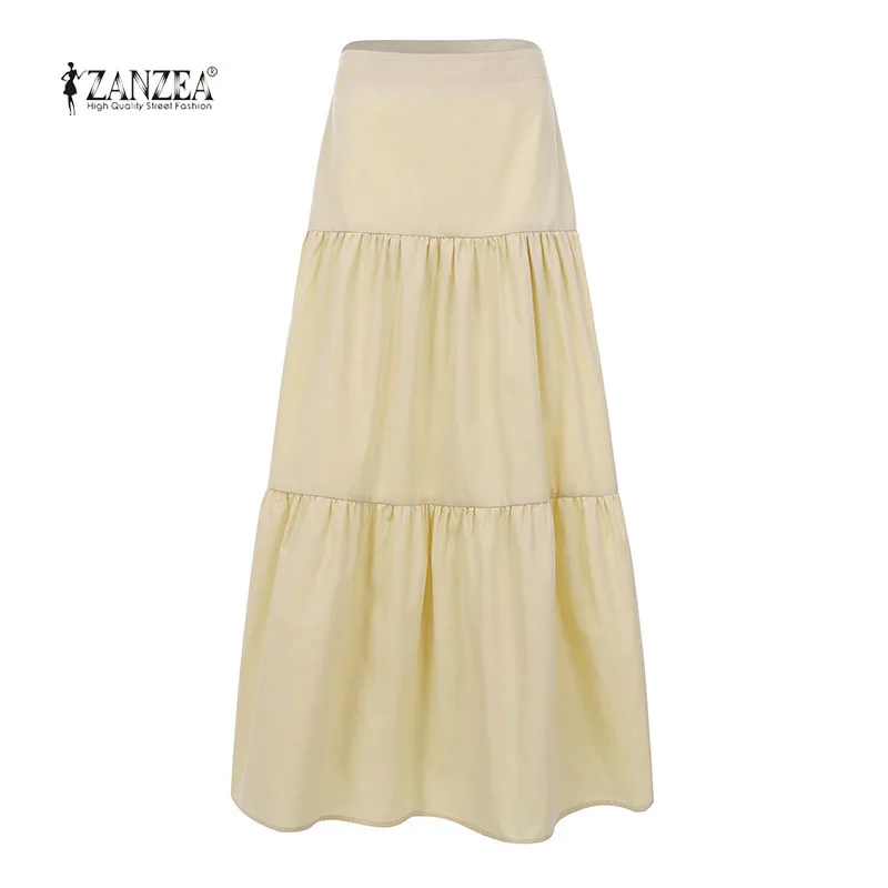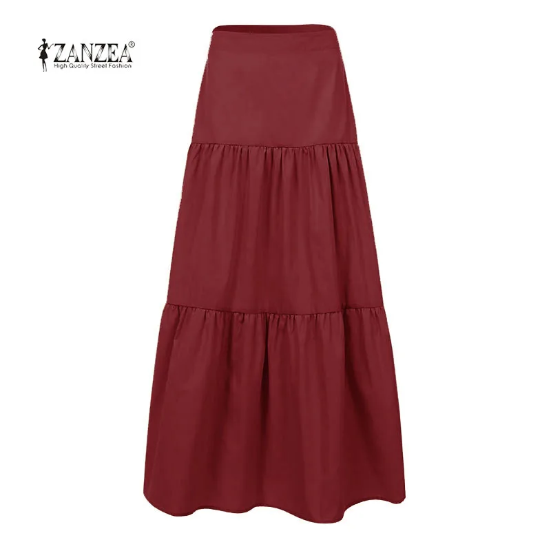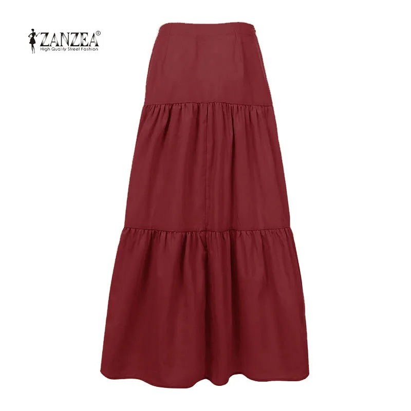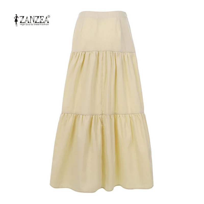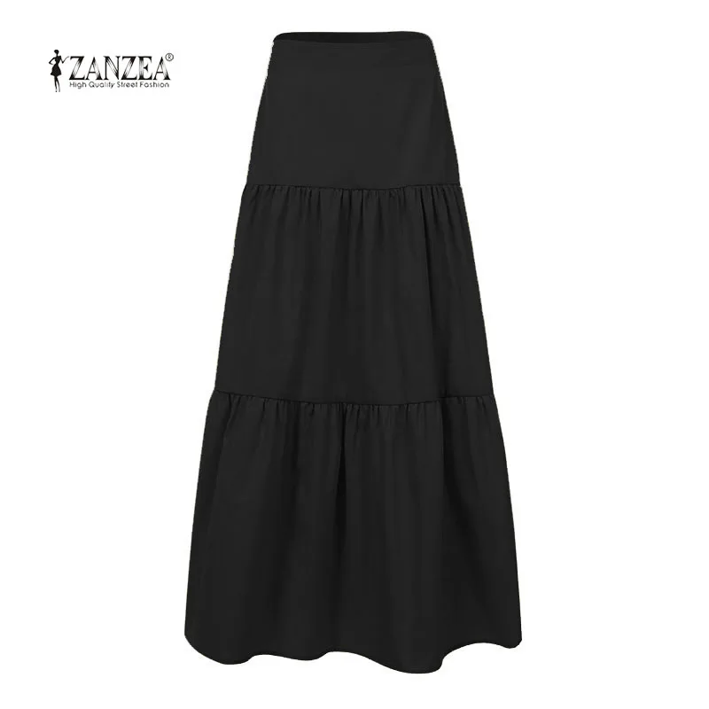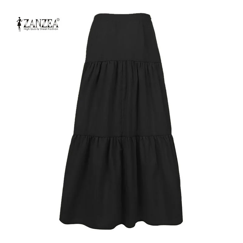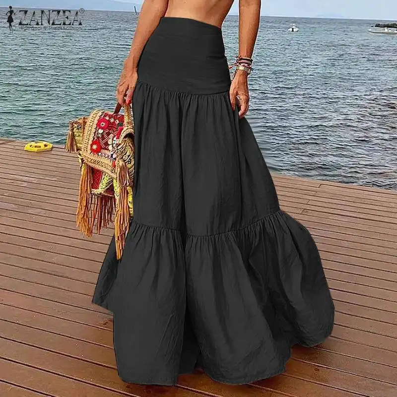 ZANZEA женская летняя длинная юбка макси с оборками 2021 элегантная юбка трапециевидной формы с боковой молнией из хлопка и льна Jupe Femme Vestidos