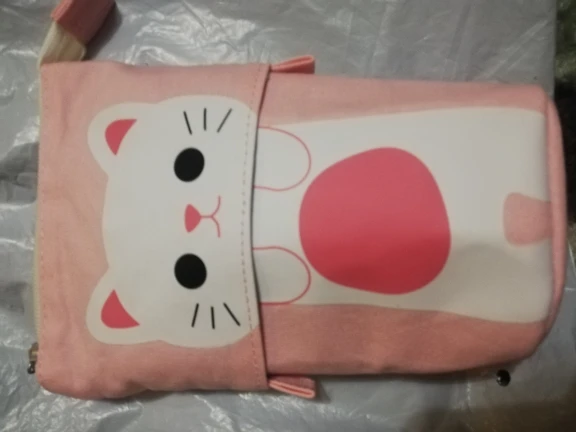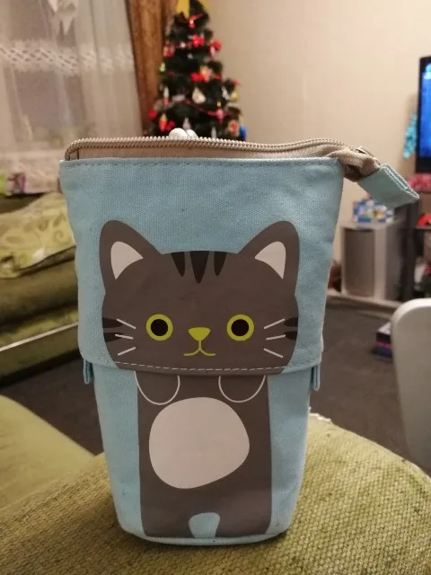 Супер, не ожидали, что пенал большущий.легко пролез мой кулак. Очень довольны, прям ваза! Аккуратно прошит, крепко, котик милый:) замок как надо, опускашки по бокам одинаковые. Донышко точно не картон:)с продавцом не общались. СПАСИБО!!!