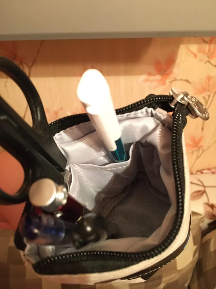 Очень практичный чехол, чтобы иметь ручки и маркеры, заказанные и стоящие. Очень легко ложится вниз и вверх