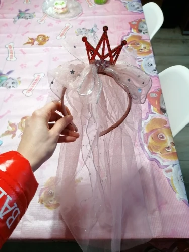 На фото выглядит лучше. Корона из картонки с наклееной блестяшкой, ребёнку не на долго хватит, выглядит дёшево. Пожалела, что здесь купила. В следующий раз в магазине вживую буду покупать.