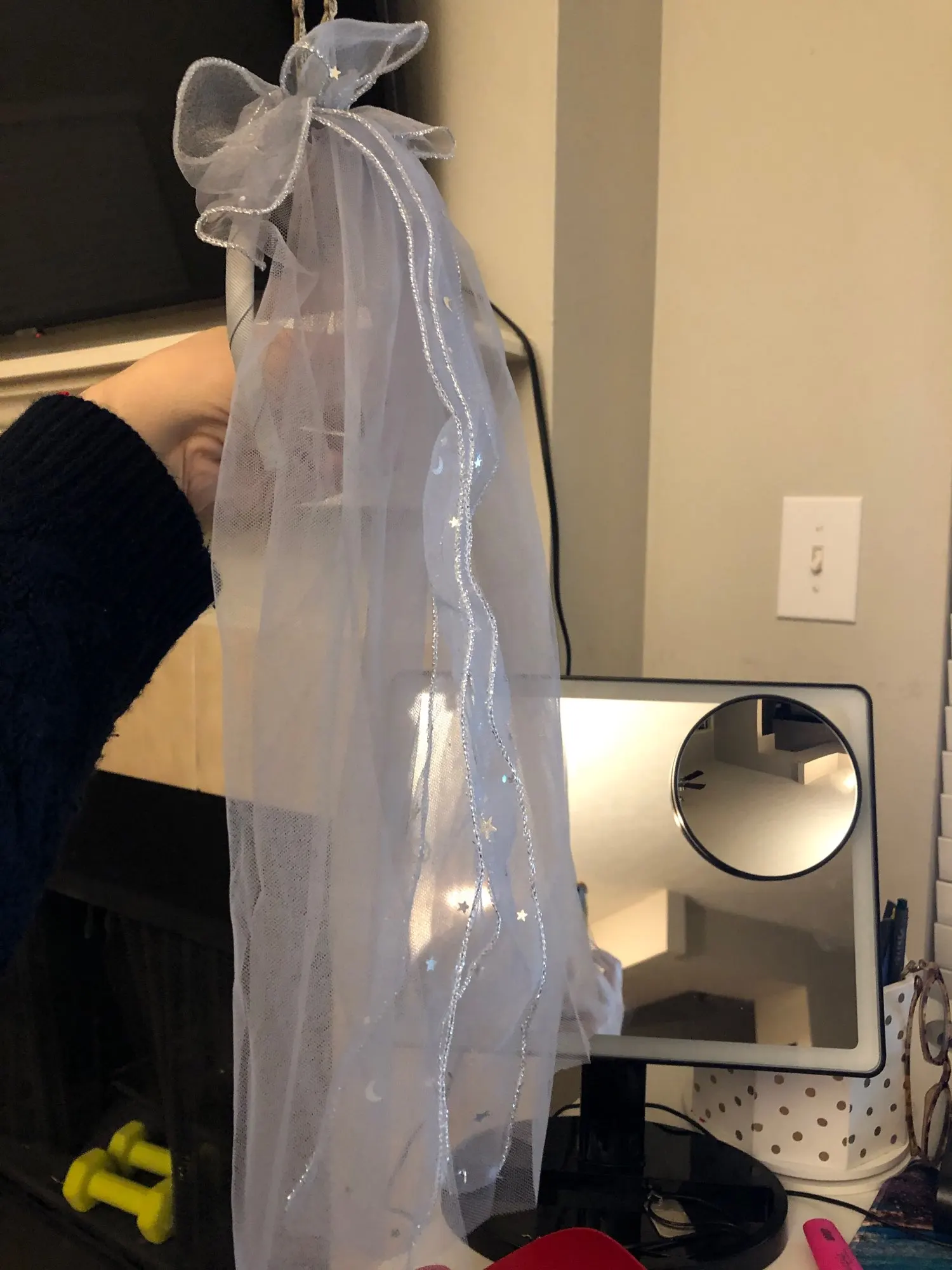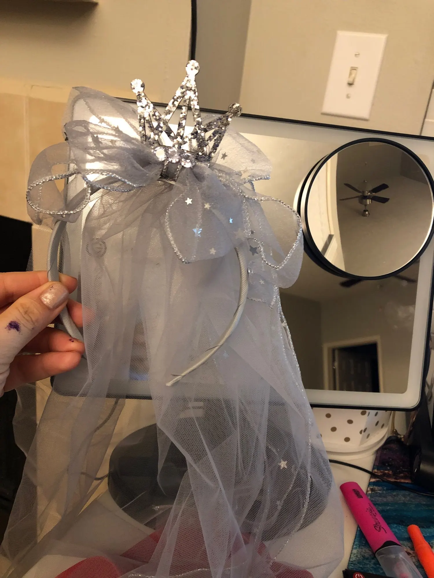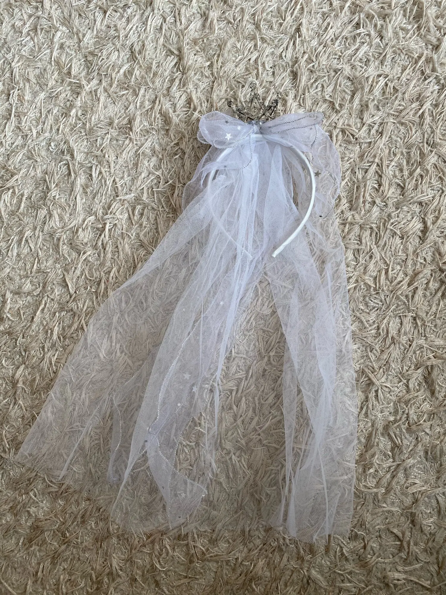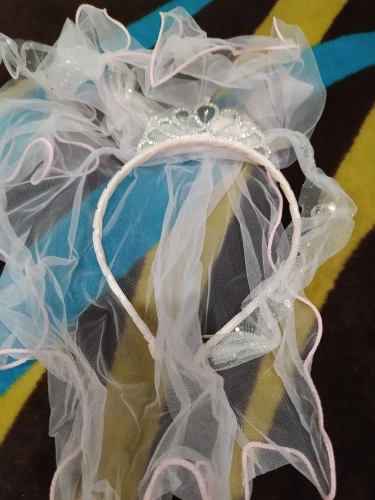 Фата не длинная, ободок обмотан лентой, приклеенной ненадёжно. Но дочка счастлива, и это главное! Спасибо!)