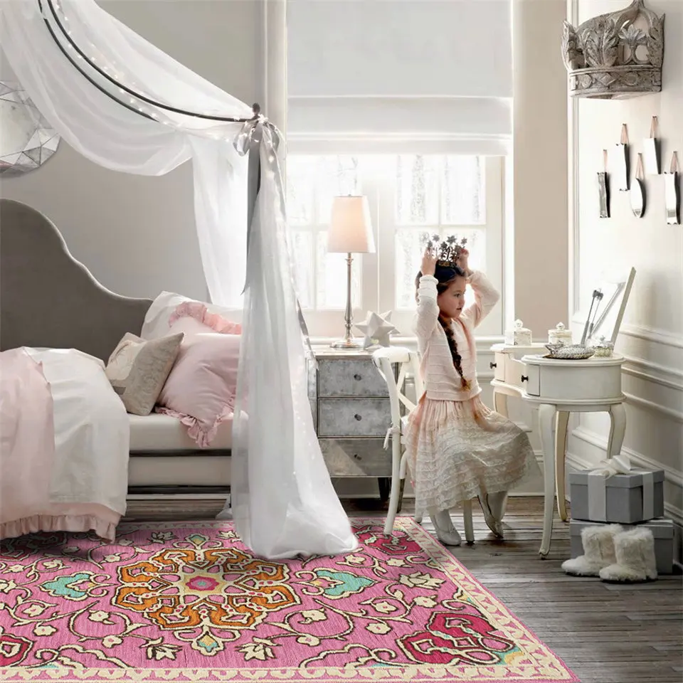 Ковер в скандинавском стиле с розовыми цветами, ковер для украшения комнаты для девочек, ковер в стиле принцессы для спальни, модный Европейский прикроватный ковер для женщин
