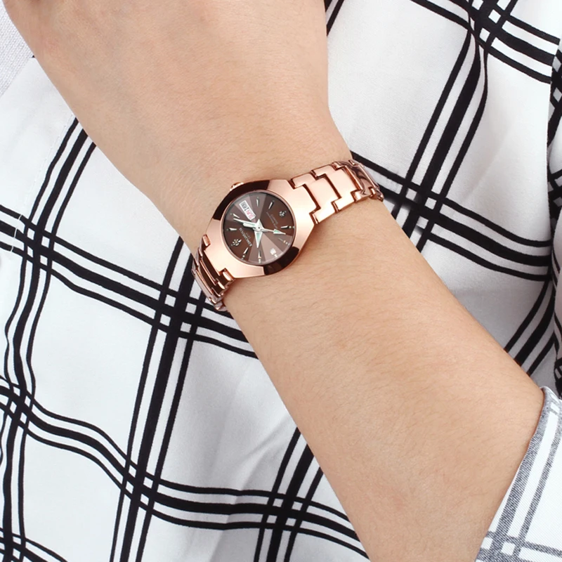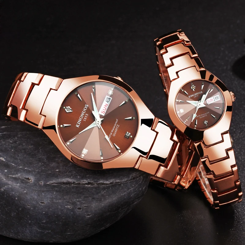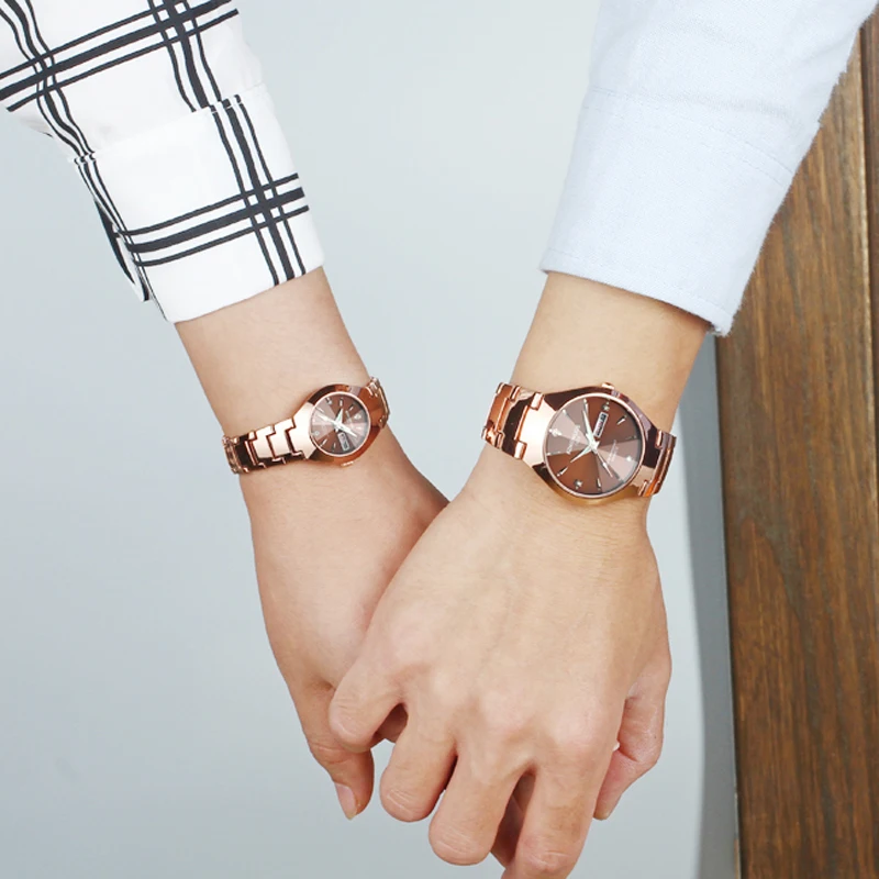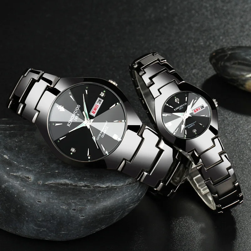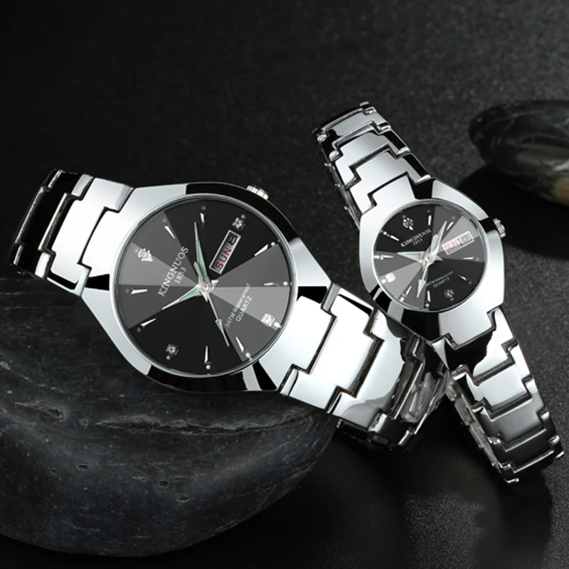 Парные кварцевые часы, наручные часы из вольфрамовой стали со стальным браслетом, светящиеся часы с отображением даты недели для мужчин и женщин, водонепроницаемые часы для любителей студентов