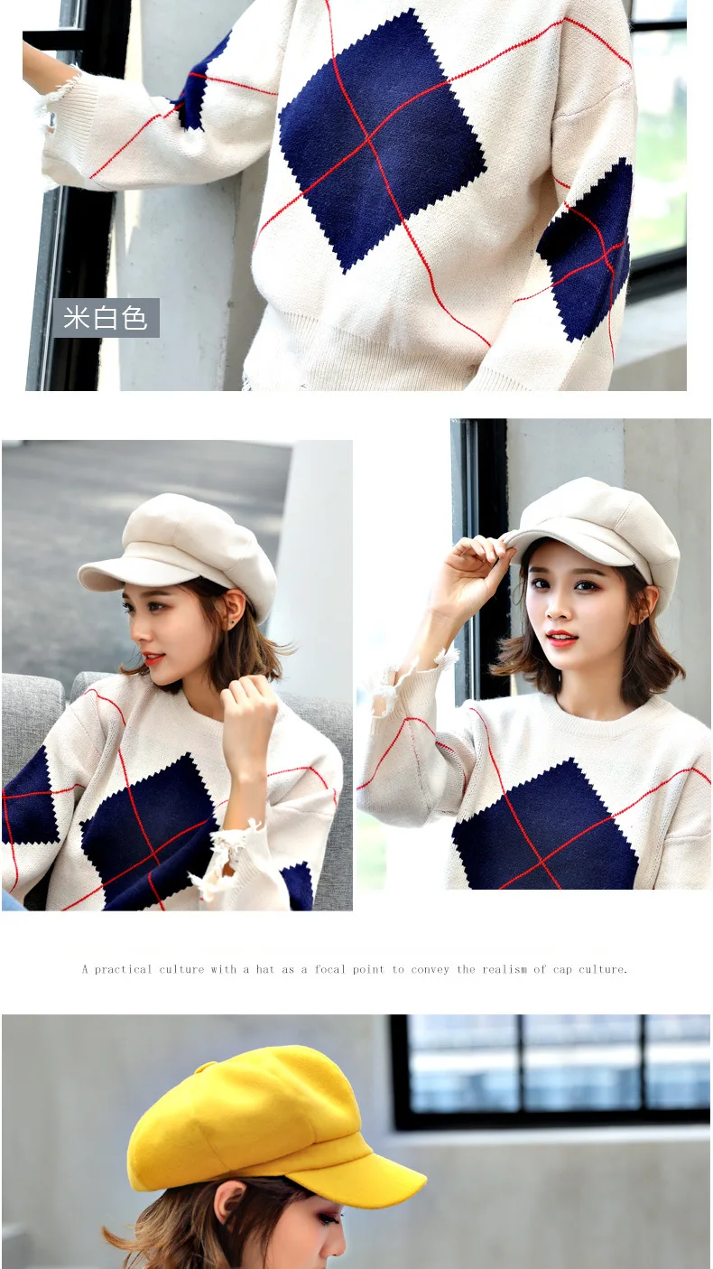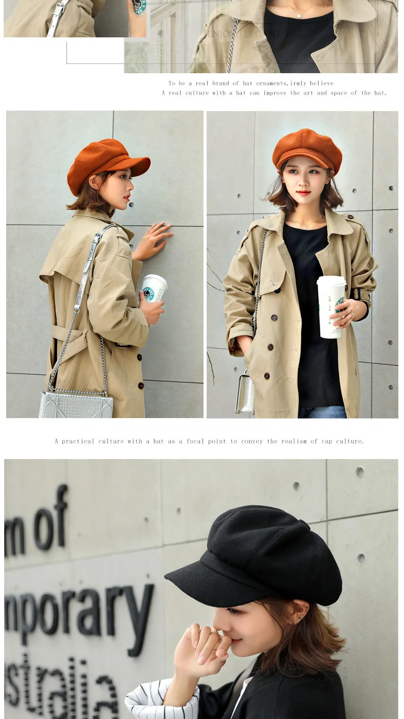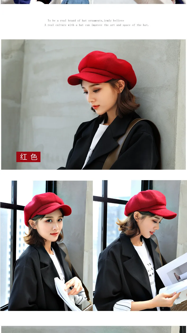 Берет газетчика художника, Осенний Женский, кепка в британском стиле, ретро, однотонный, восьмиугольные шапочки, женские, плотные, теплые, зимние шапки, Кепка с козырьком