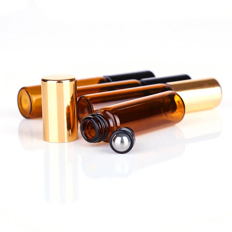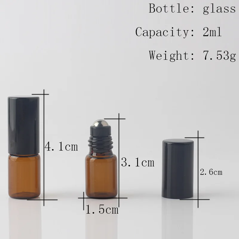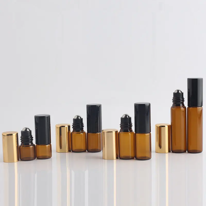 50 шт.лот 1 мл Янтарный алюминиевый роликовый шар флакон духов пустая рулонная стеклянная бутылка рулон на образец дорожная бутылка Золотая черная крышка