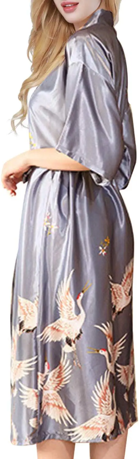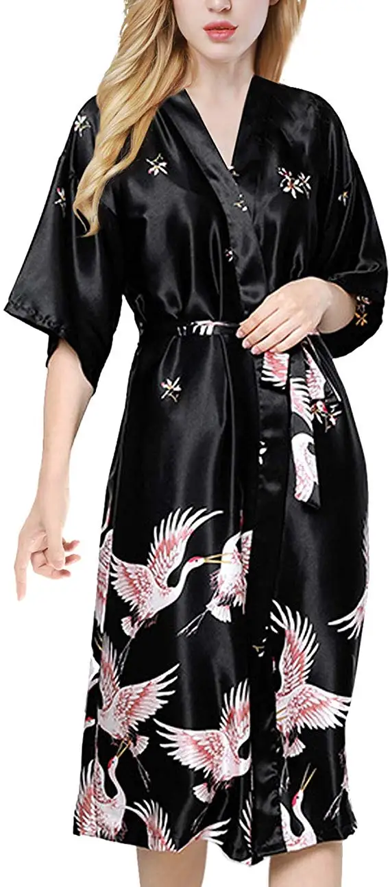 Халат-кимоно Женский атласный, длинное свадебное платье невесты и подружки невесты, пикантная Пижама с цветочным принтом, черный M-3XL, лето